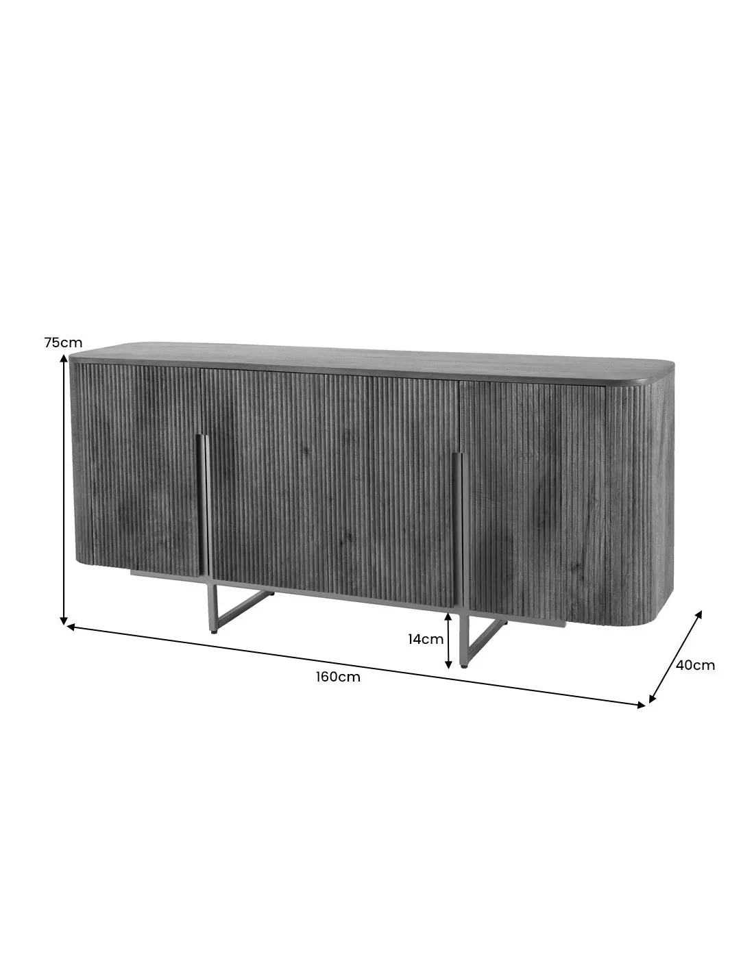 Sublimez votre intérieur avec le Buffet Adenia Home au style Rétro. Ce meuble d'exception en bois massif de manguier se distingue par ses façades rainurées uniques et son cadre élégant en métal doré. Avec ses 160 cm de long et ses 4 compartiments spacieux, il allie parfaitement design vintage et capacité de rangement généreuse pour votre salon ou salle à manger.