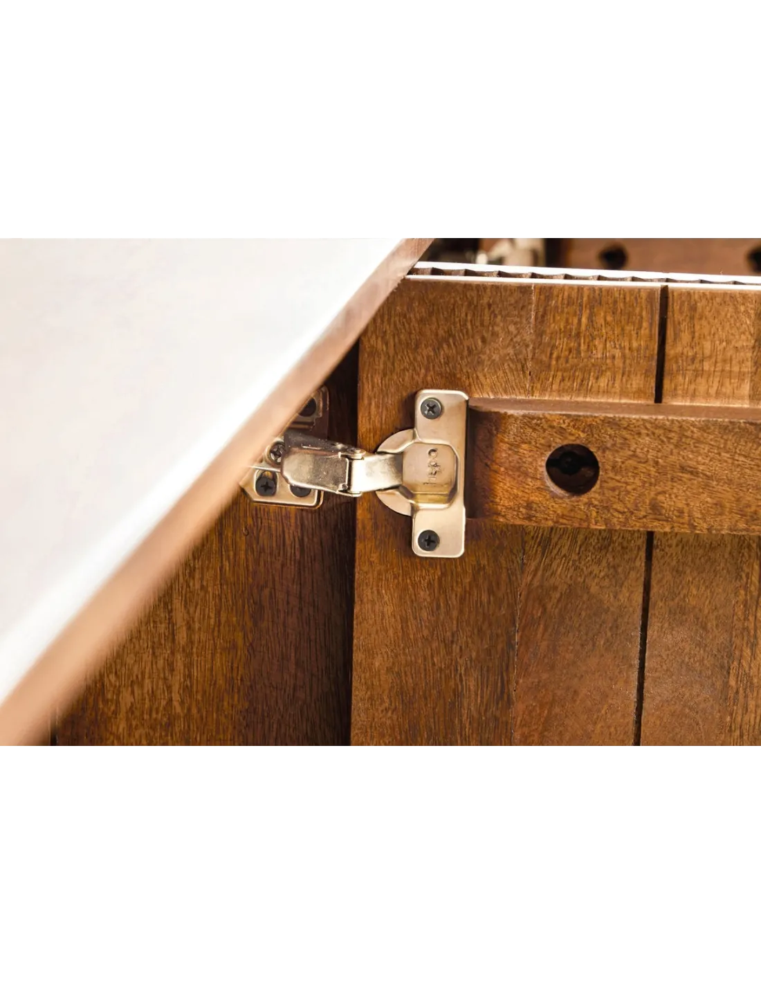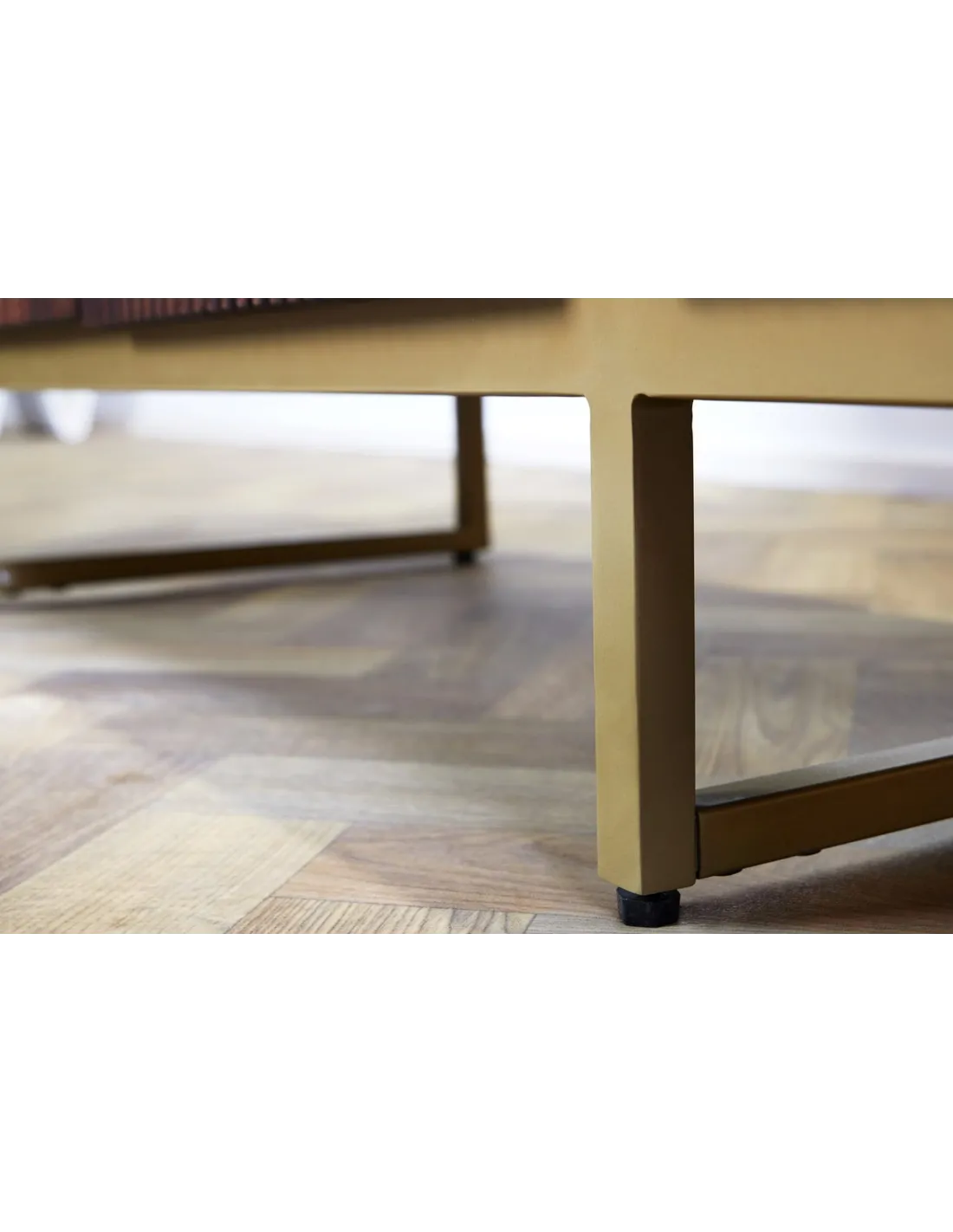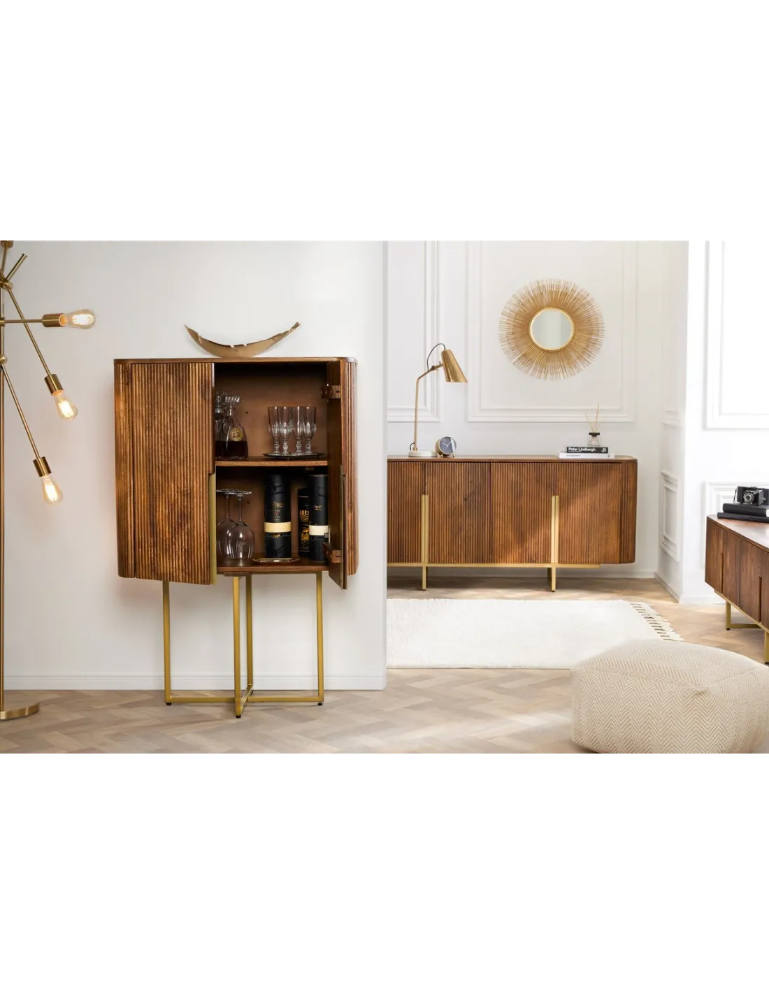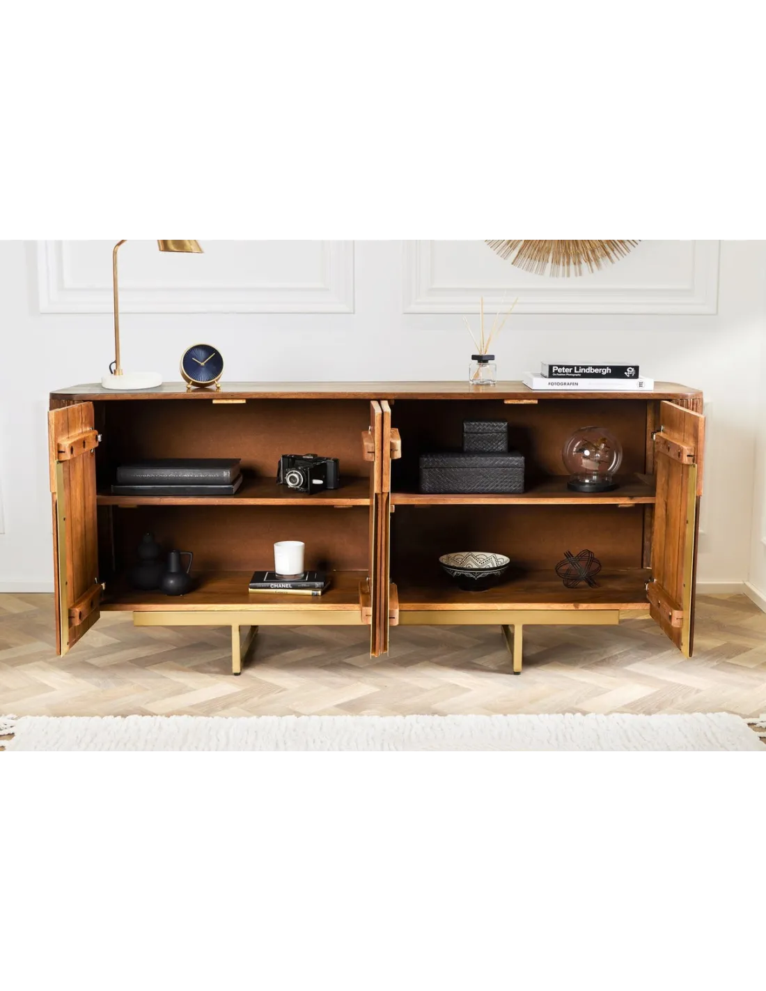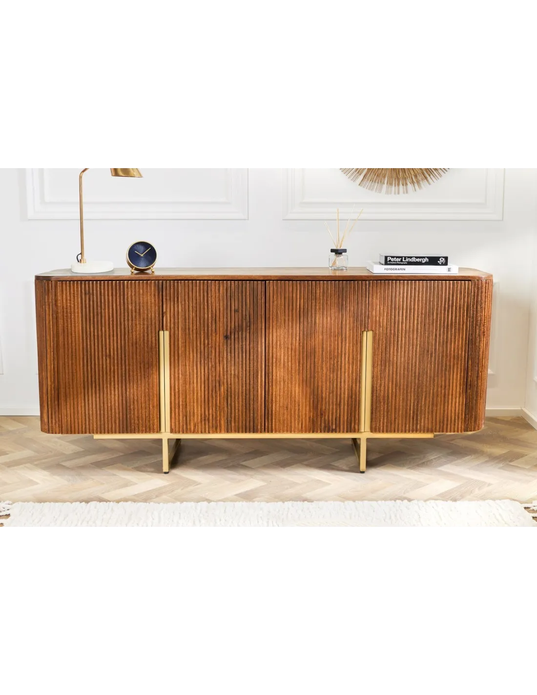 Buffet Rétro en Bois Massif de Manguier Rainuré et Métal doré - L160cm