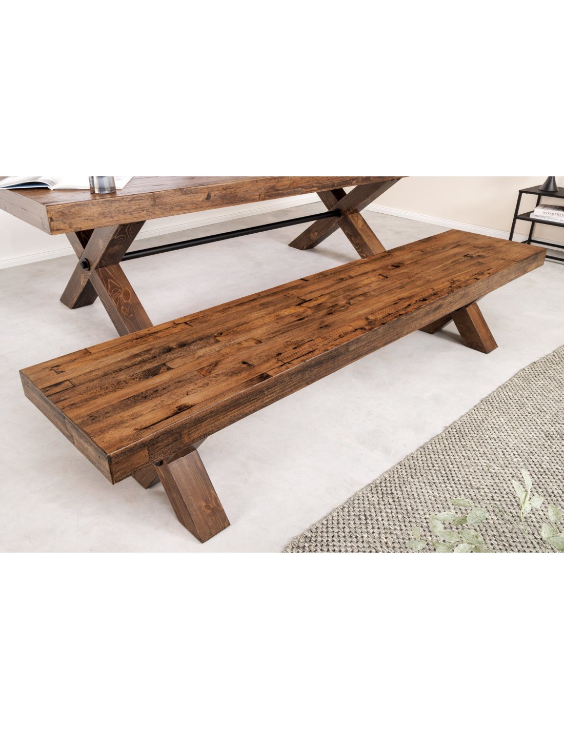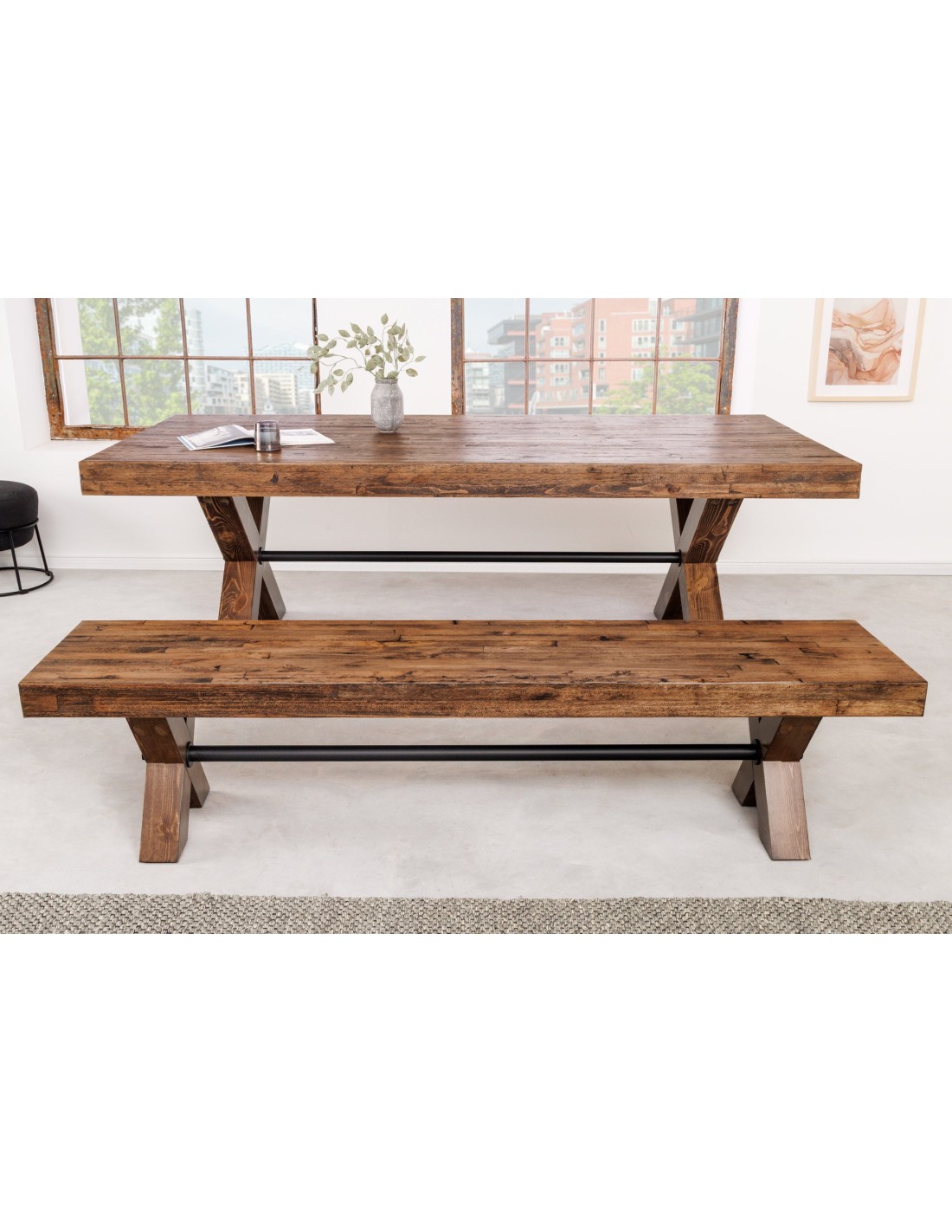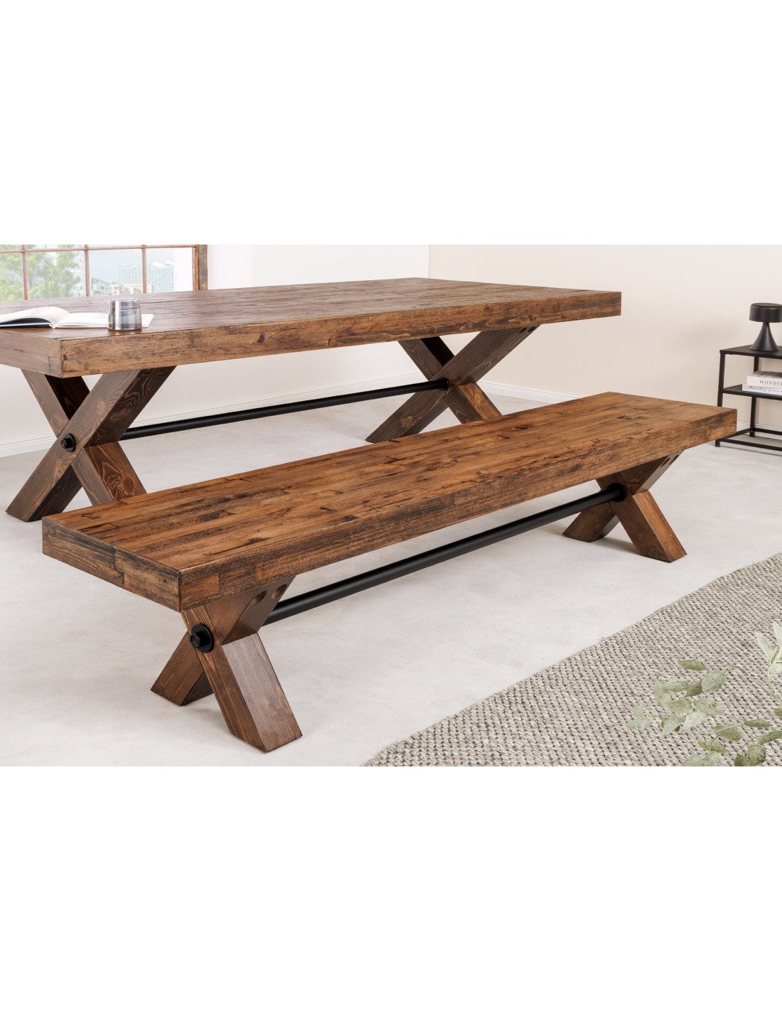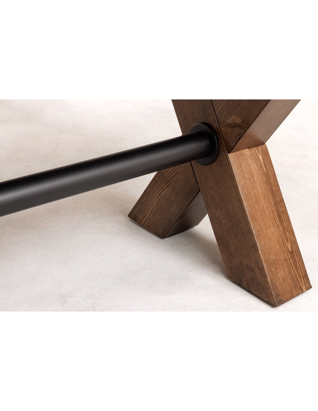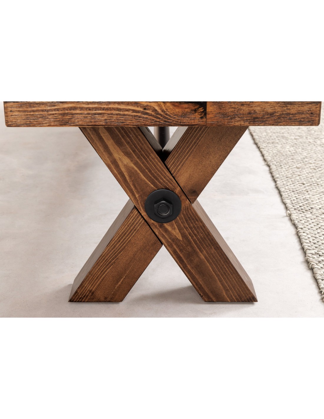Son plateau en pin naturel met en valeur la beauté du bois brut, tandis que sa structure en X en métal noir lui confère un style industriel marqué.