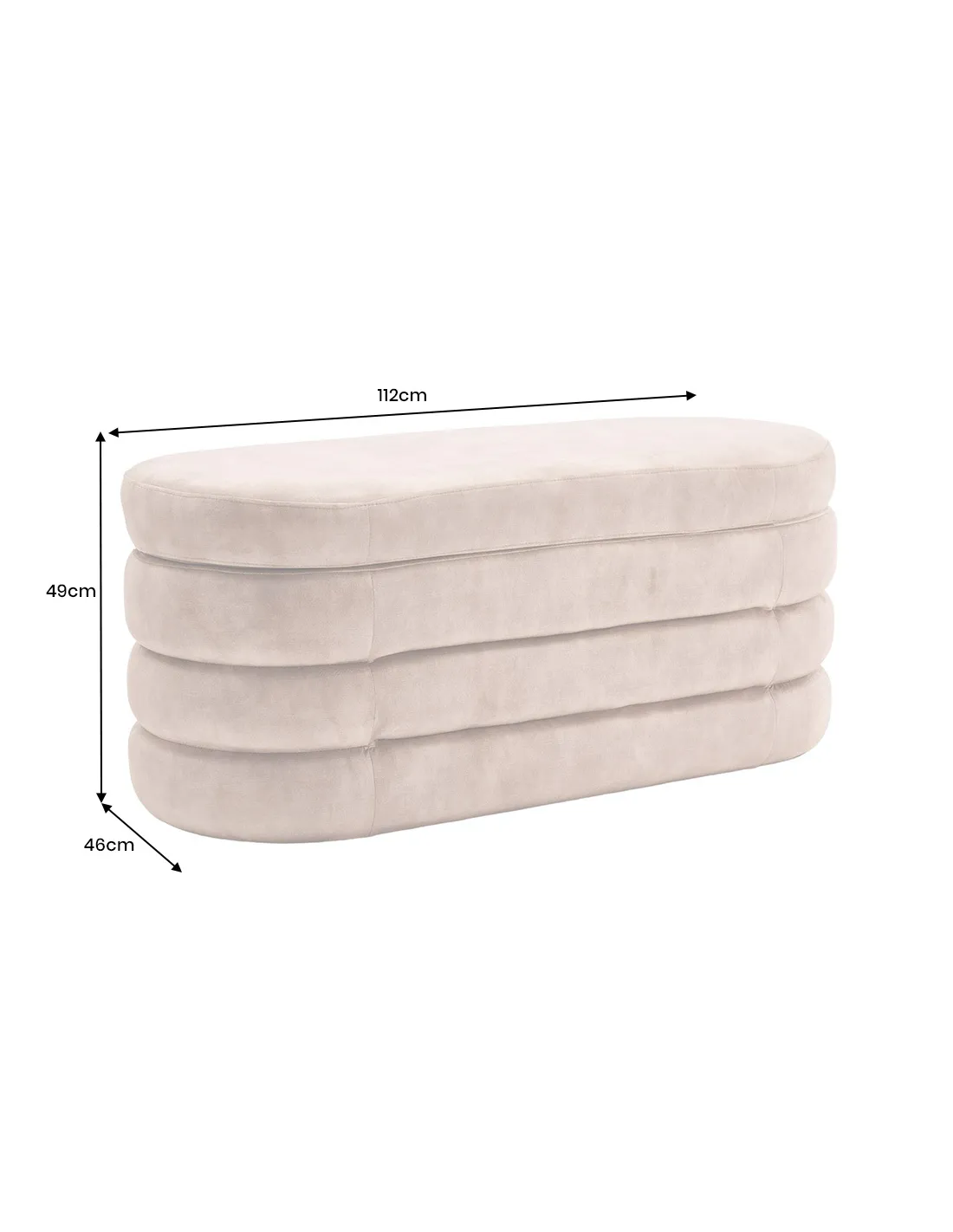 Dimensions idéales : largeur 113 cm et profondeur 49 cm, parfait pour une banquette d’appoint ou pour l’entrée.