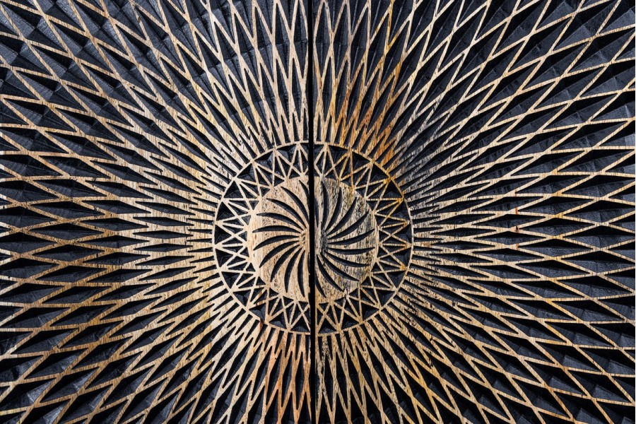 Chaque pièce est unique, les nuances du bois et les reliefs varient légèrement, soulignant le caractère artisanal du meuble.