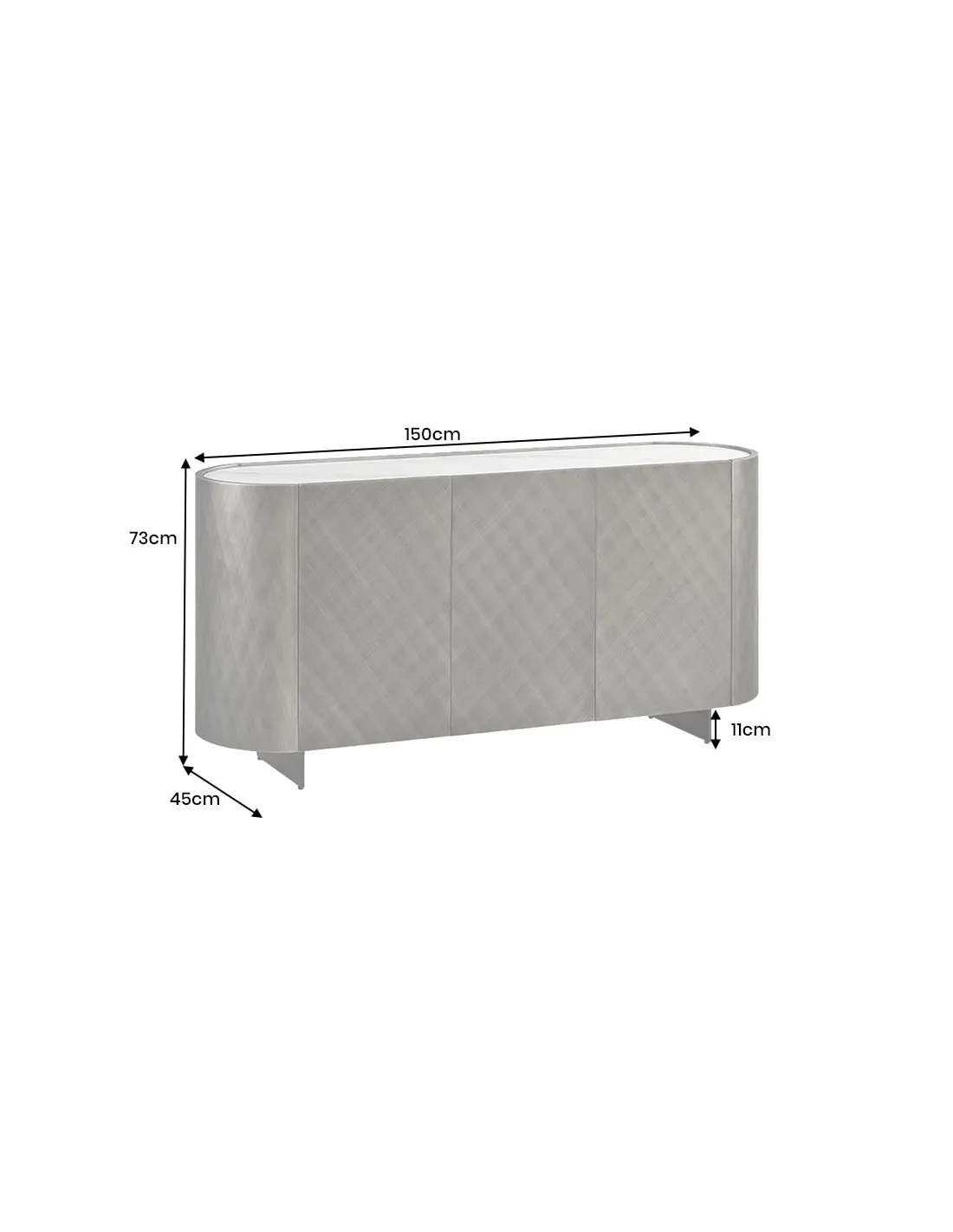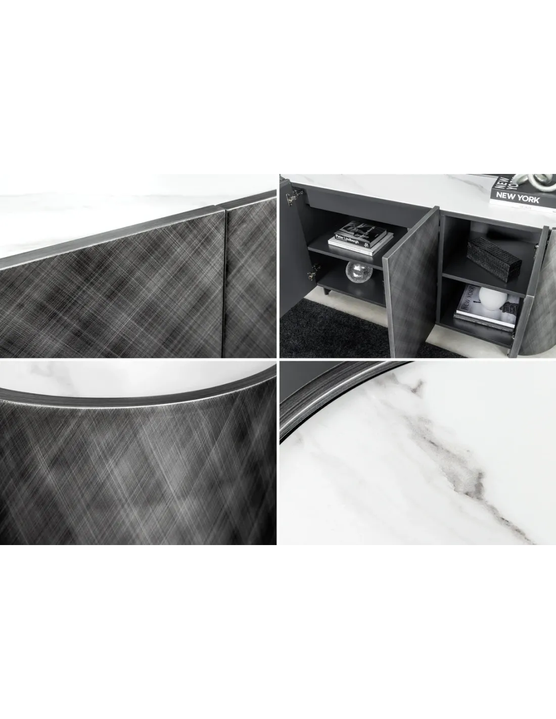 Le buffet REFLECTION allie design contemporain, rangement pratique et matériaux de qualité. Son effet 3D anthracite et son plateau en céramique effet marbre blanc en font un meuble central esthétique et fonctionnel, parfait pour organiser vos espaces avec style.