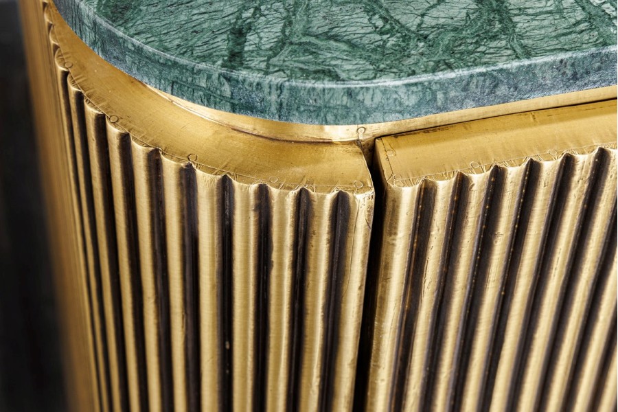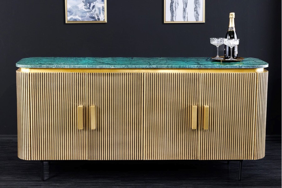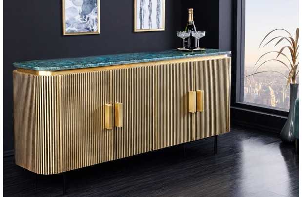 Associez le buffet VENEZIANO à un grand miroir doré ou à une lampe contemporaine pour sublimer ses reflets laiton.