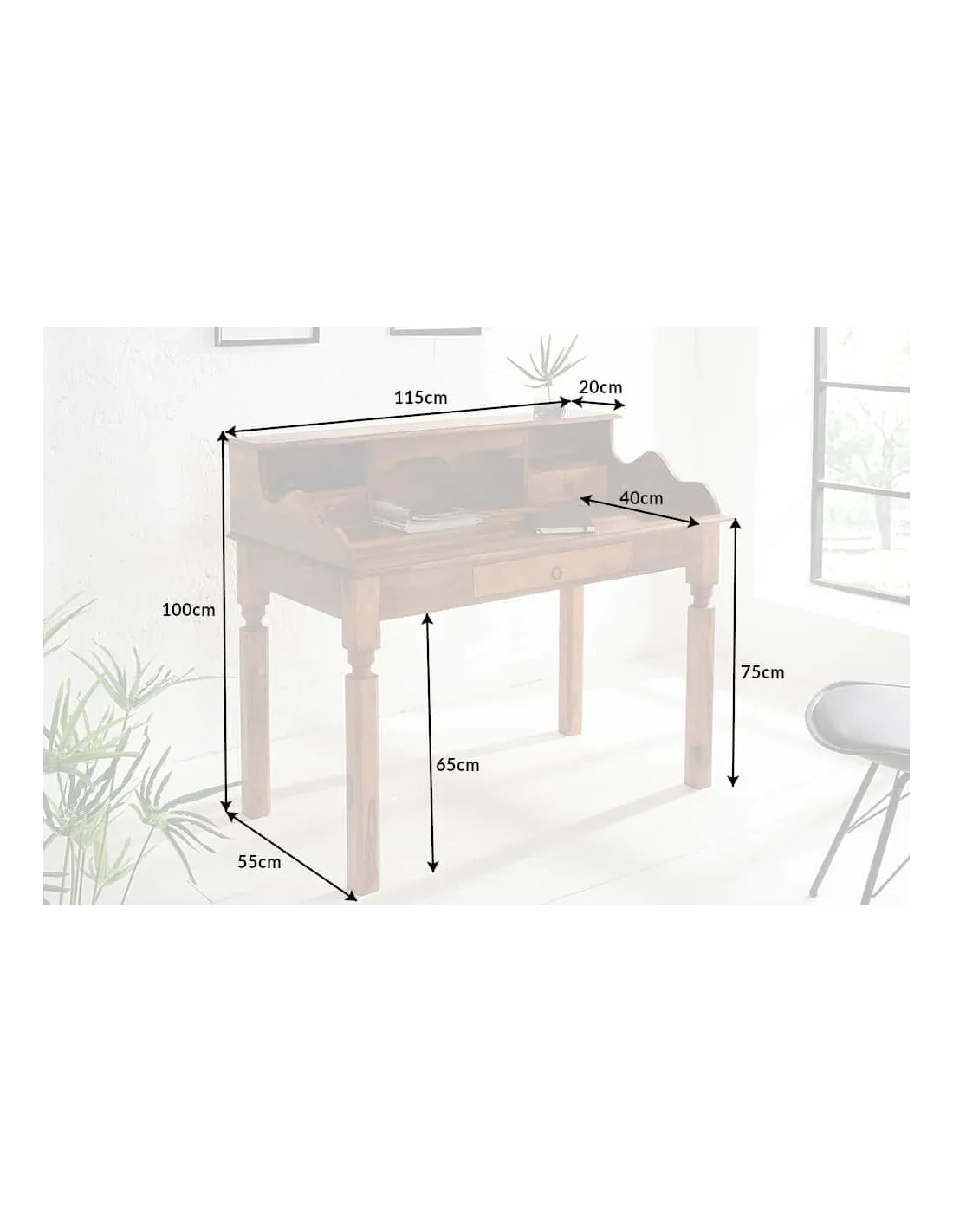 Avec ses 115 cm de largeur et 55 cm de profondeur, ce bureau offre une surface confortable pour travailler, installer un ordinateur ou écrire. Sa hauteur de 100 cm lui confère une allure élégante et une ergonomie bien pensée.