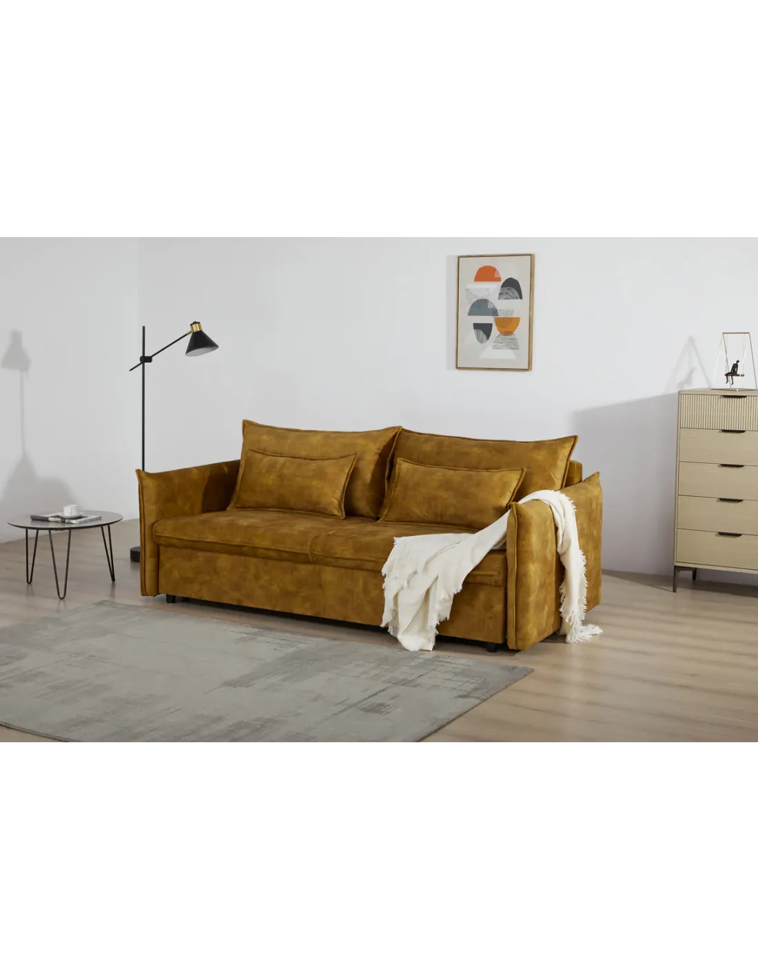 ✨ Le canapé-lit APPARTEMENT en velours jaune moutarde est le choix parfait pour ceux qui recherchent à la fois style, confort et fonctionnalité. Sa couleur éclatante en fait un véritable atout déco, tandis que son couchage intégré vous garantit praticité et gain de place.