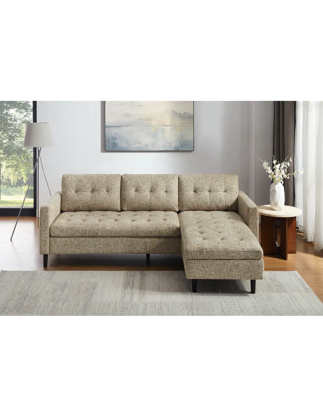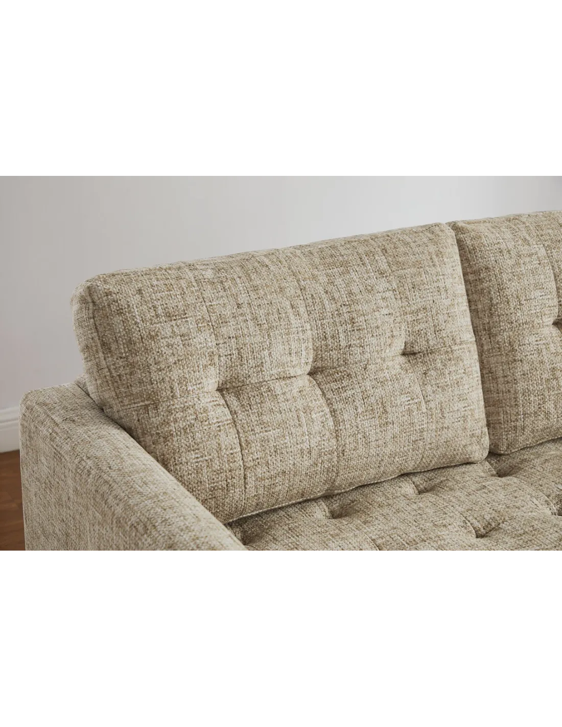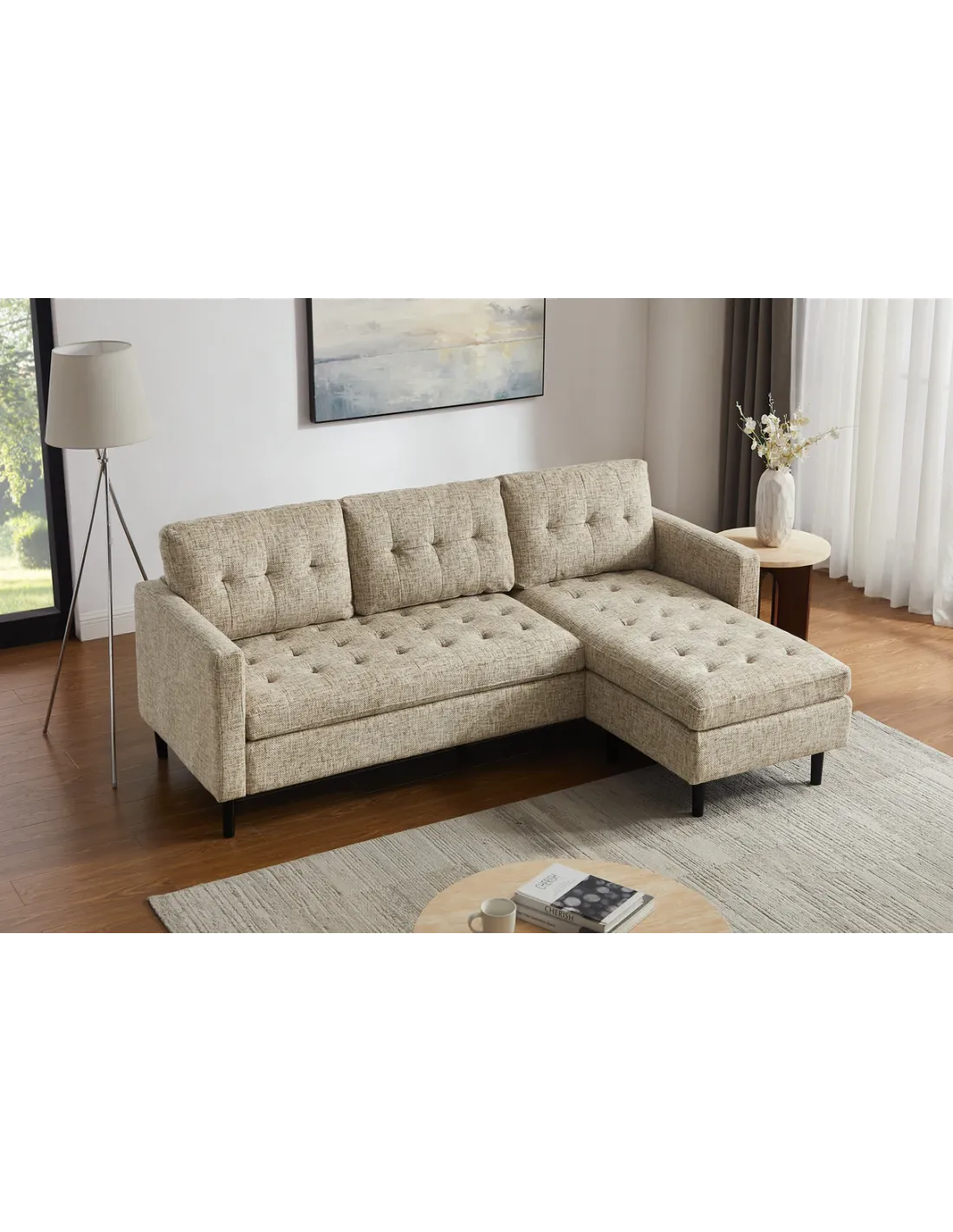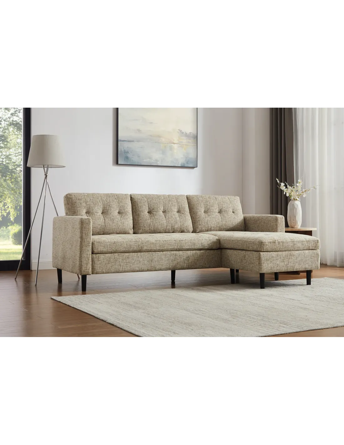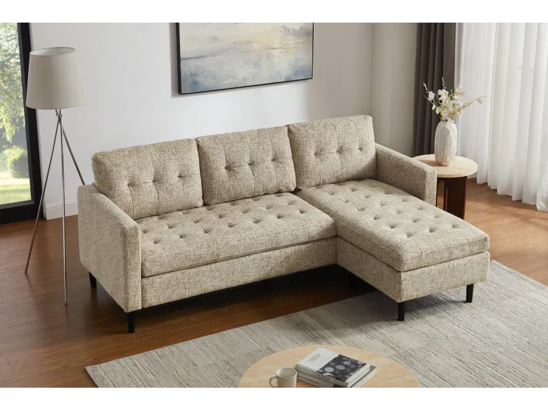 Le canapé d’angle STOCKHOLM 220 cm en tissu texturé beige combine style, confort et modularité, transformant votre salon en un espace chic, convivial et pratique.