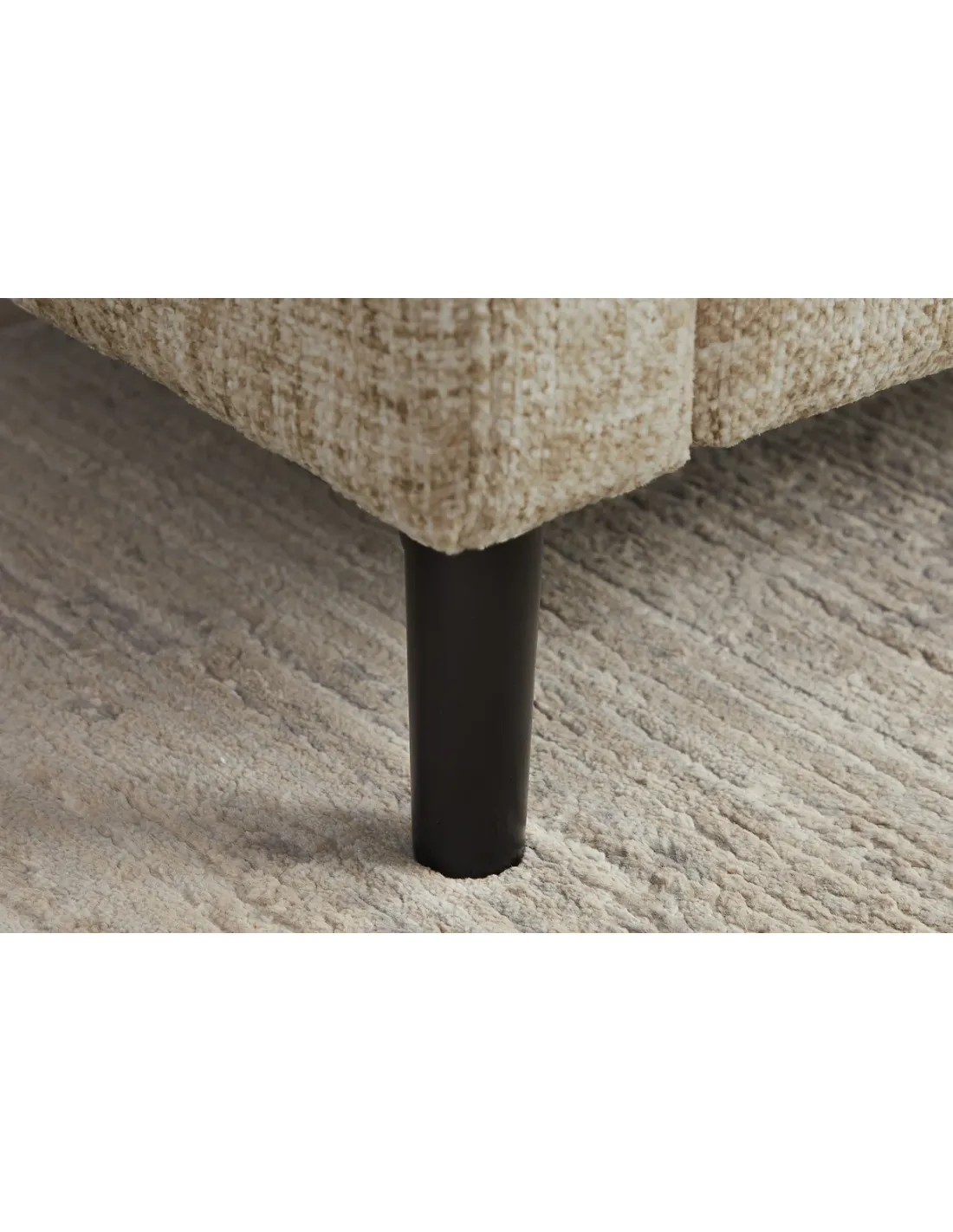 Le canapé dispose d’une assise généreuse (195 x 55 cm) avec ressorts ensachés, offrant un confort durable et un soutien optimal. La hauteur d’assise de 45 cm et la distance sol-accoudoir de 65 cm assurent une posture agréable. Le pouf modulable (65 x 120 cm) peut être placé à droite ou à gauche selon vos besoins, pour plus de flexibilité.