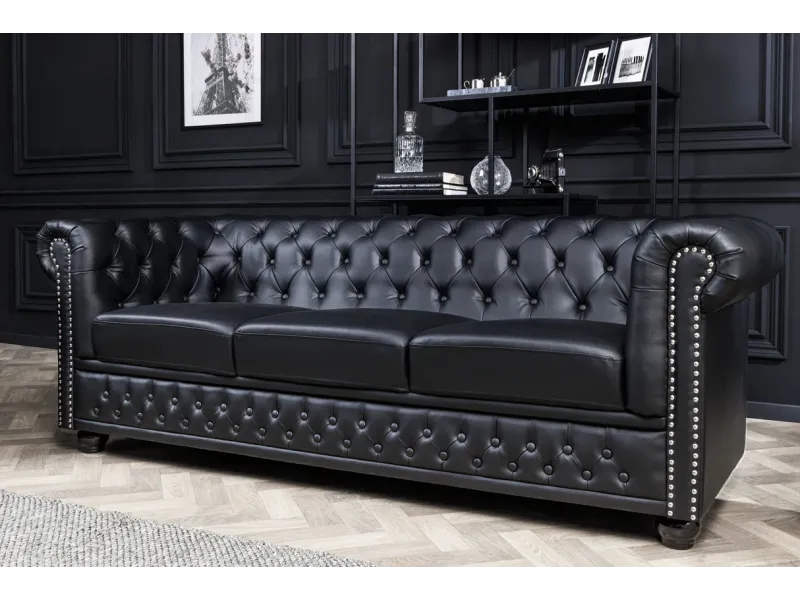 Invitez le style classique et le confort raffiné dans votre intérieur avec le canapé CHESTERFIELD noir antique 3 places, un incontournable qui traverse les modes et s’impose comme un véritable gage de caractère.