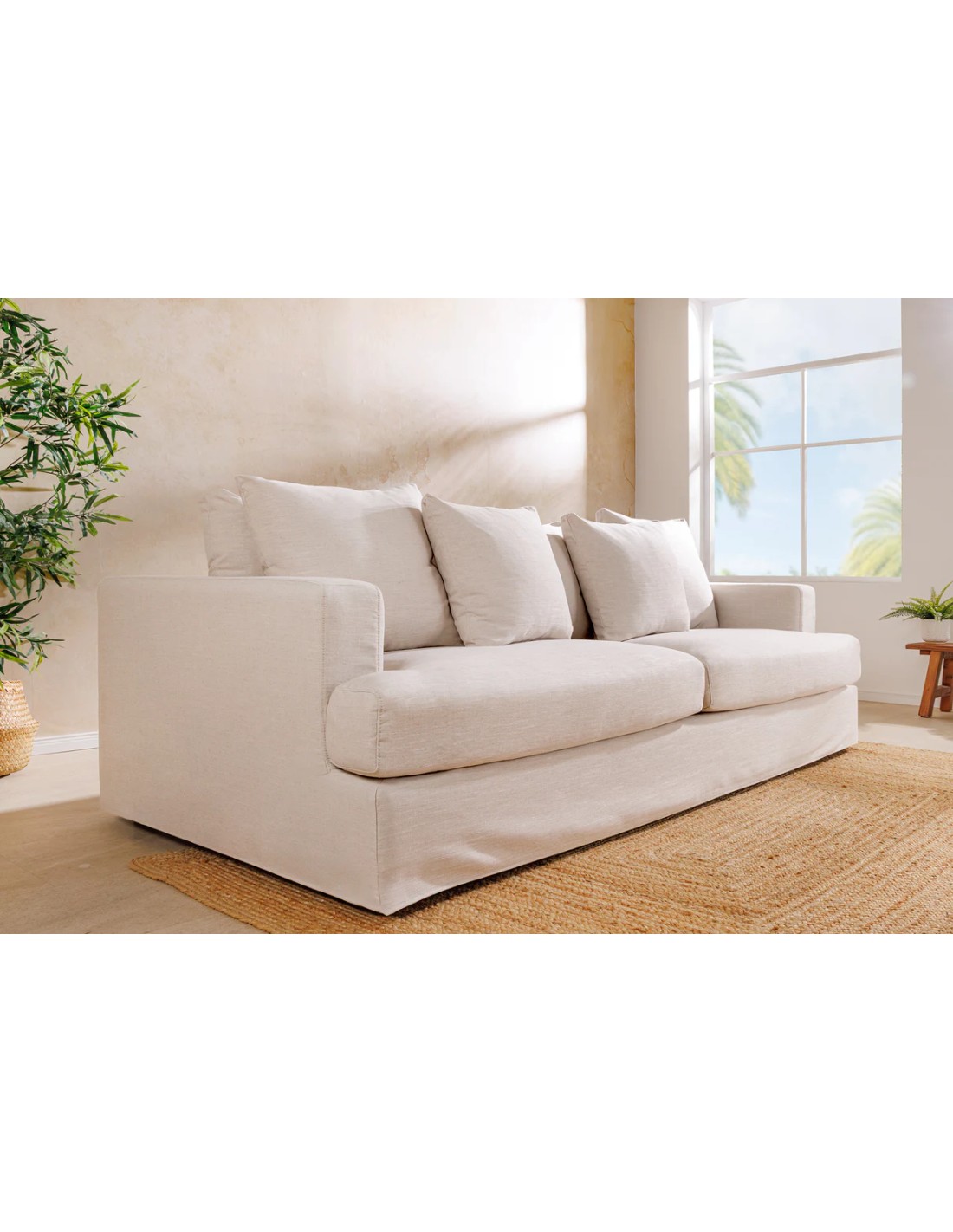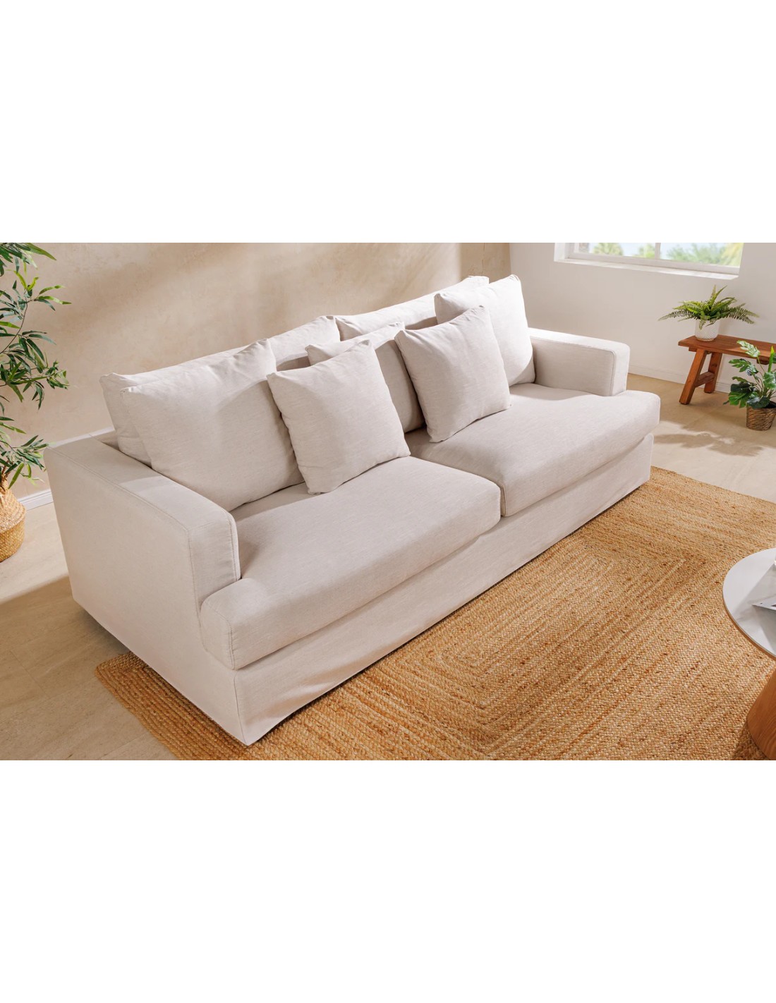 Avec son revêtement en lin au toucher doux et ses coussins généreusement rembourrés, il invite à la détente et devient instantanément le nouvel espace préféré de votre salon.