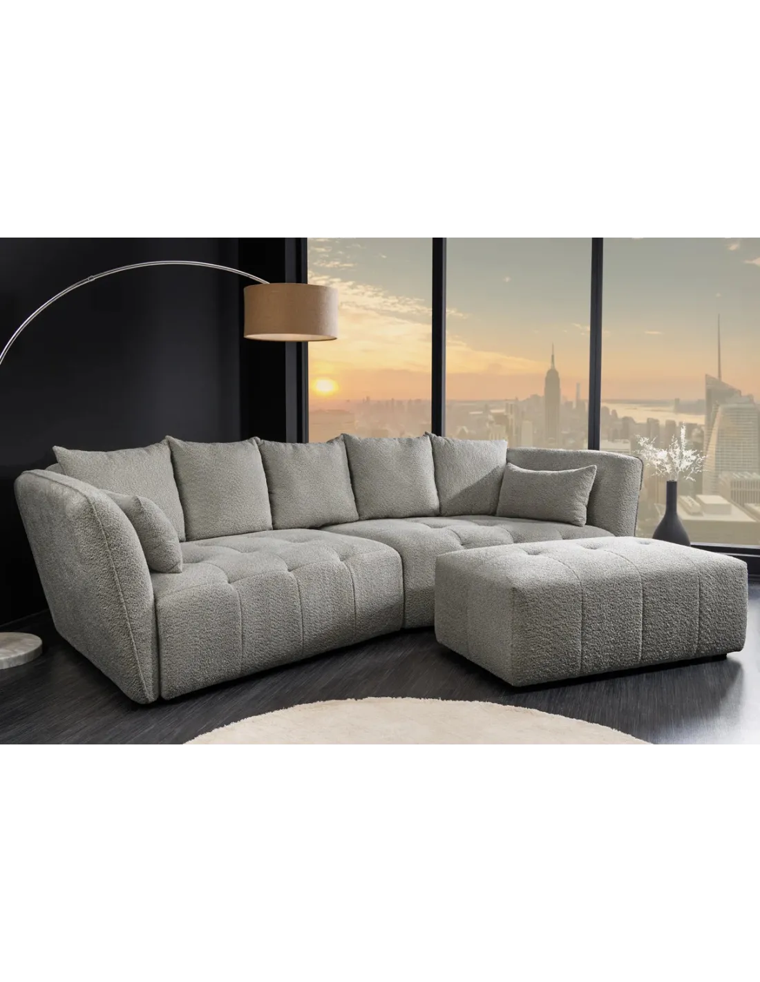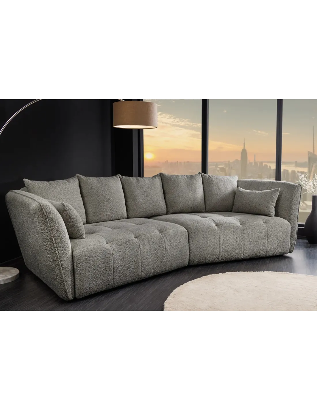 Le canapé ROYAL 295 cm XL d’Adenia Home marie design contemporain, revêtement bouclé gris et confort absolu grâce à ses ressorts ensachés. Déhoussable, spacieux et esthétique sous tous les angles, il transforme votre salon en un espace de détente haut de gamme.