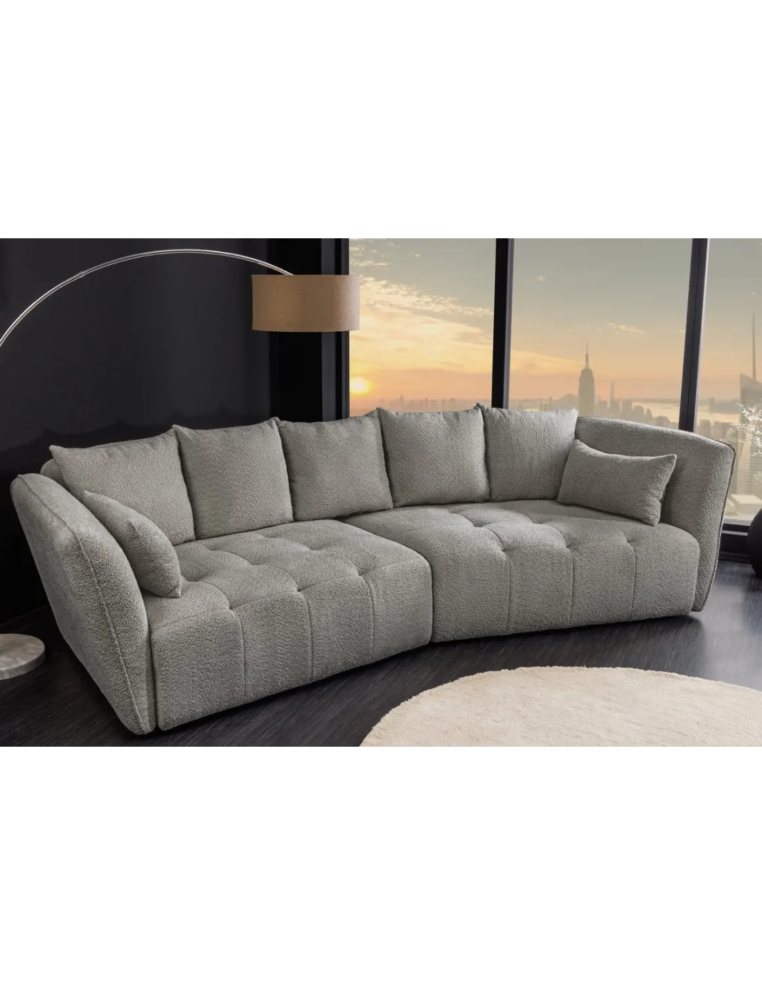 Canapé ROYAL 295cm XL ressorts ensachés déhoussable bouclé gris