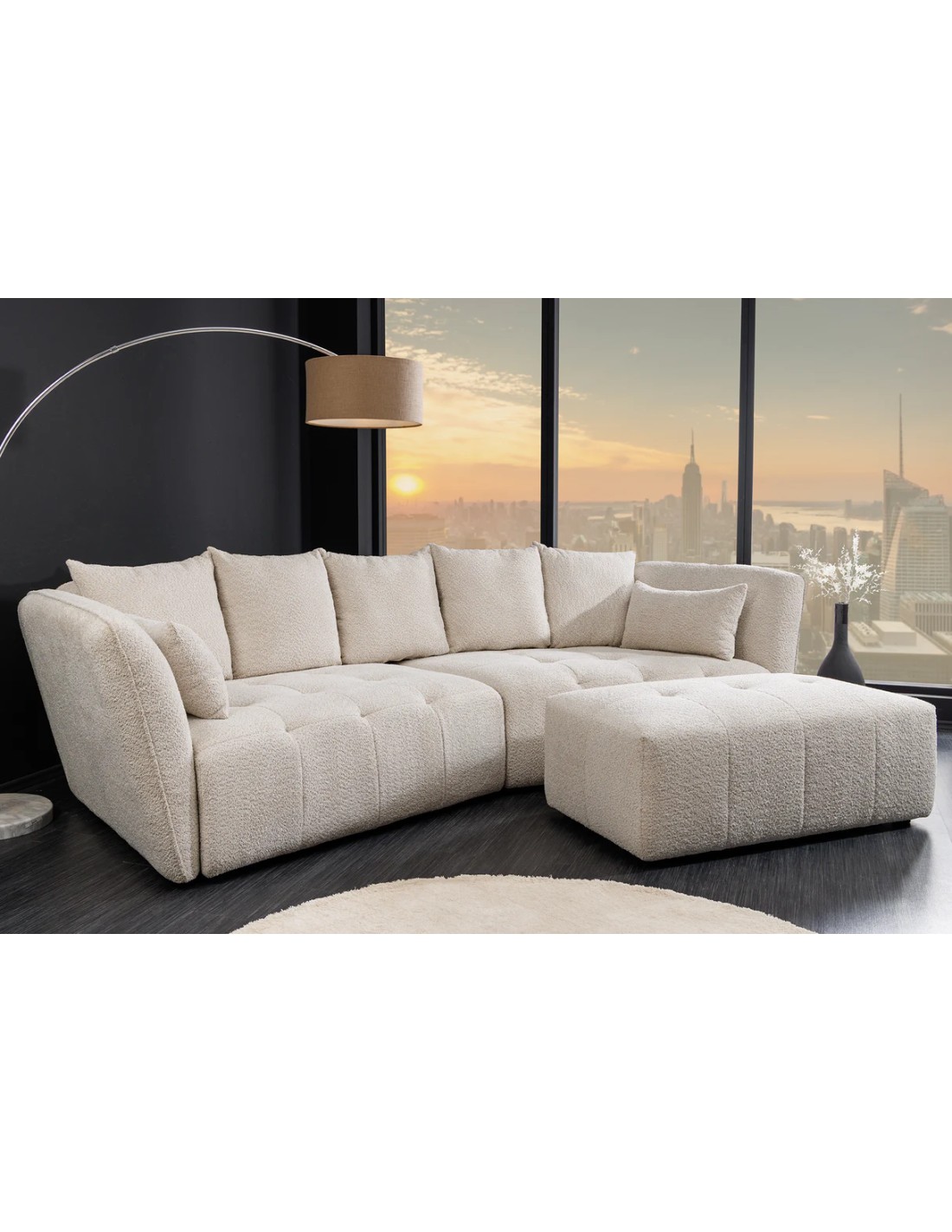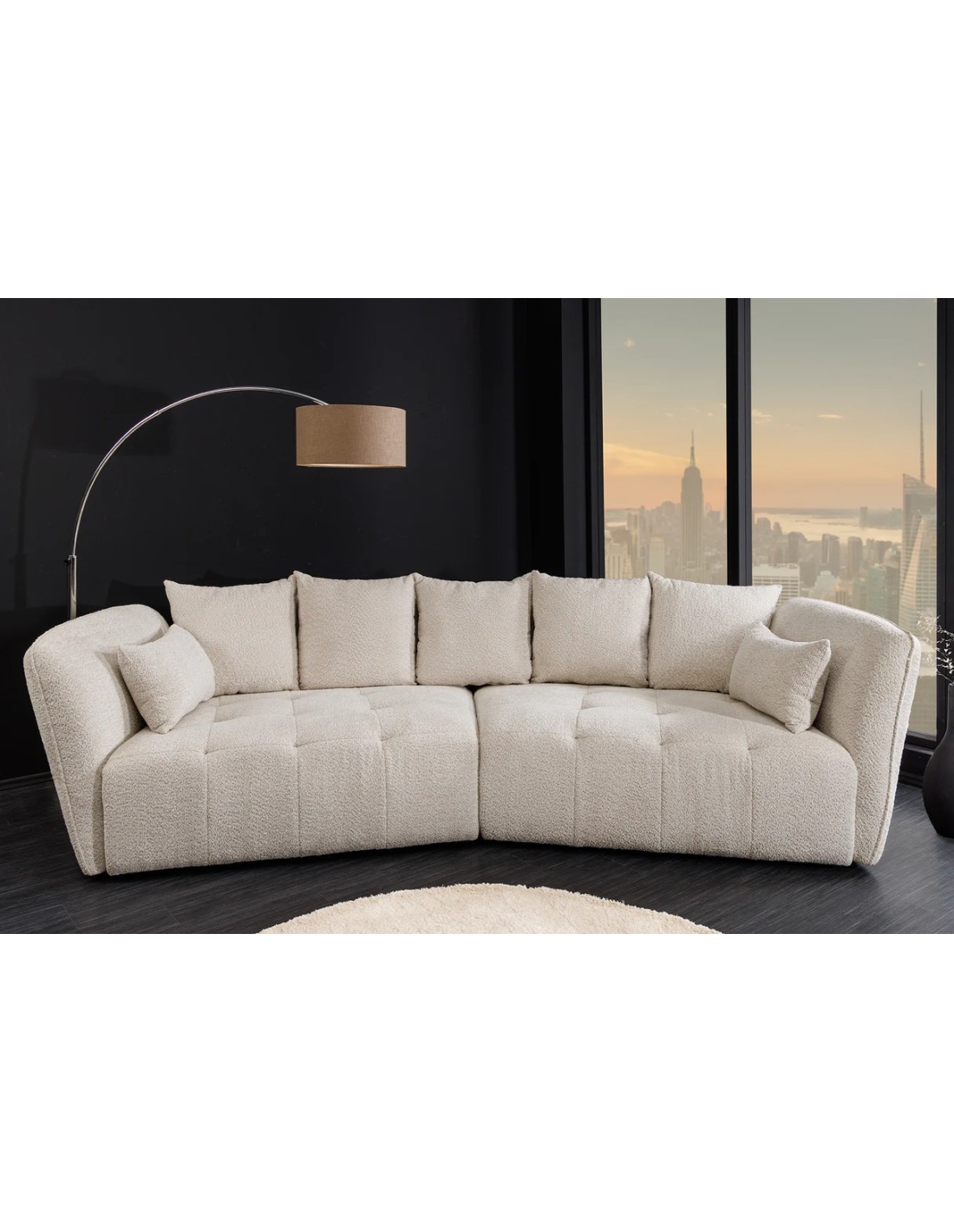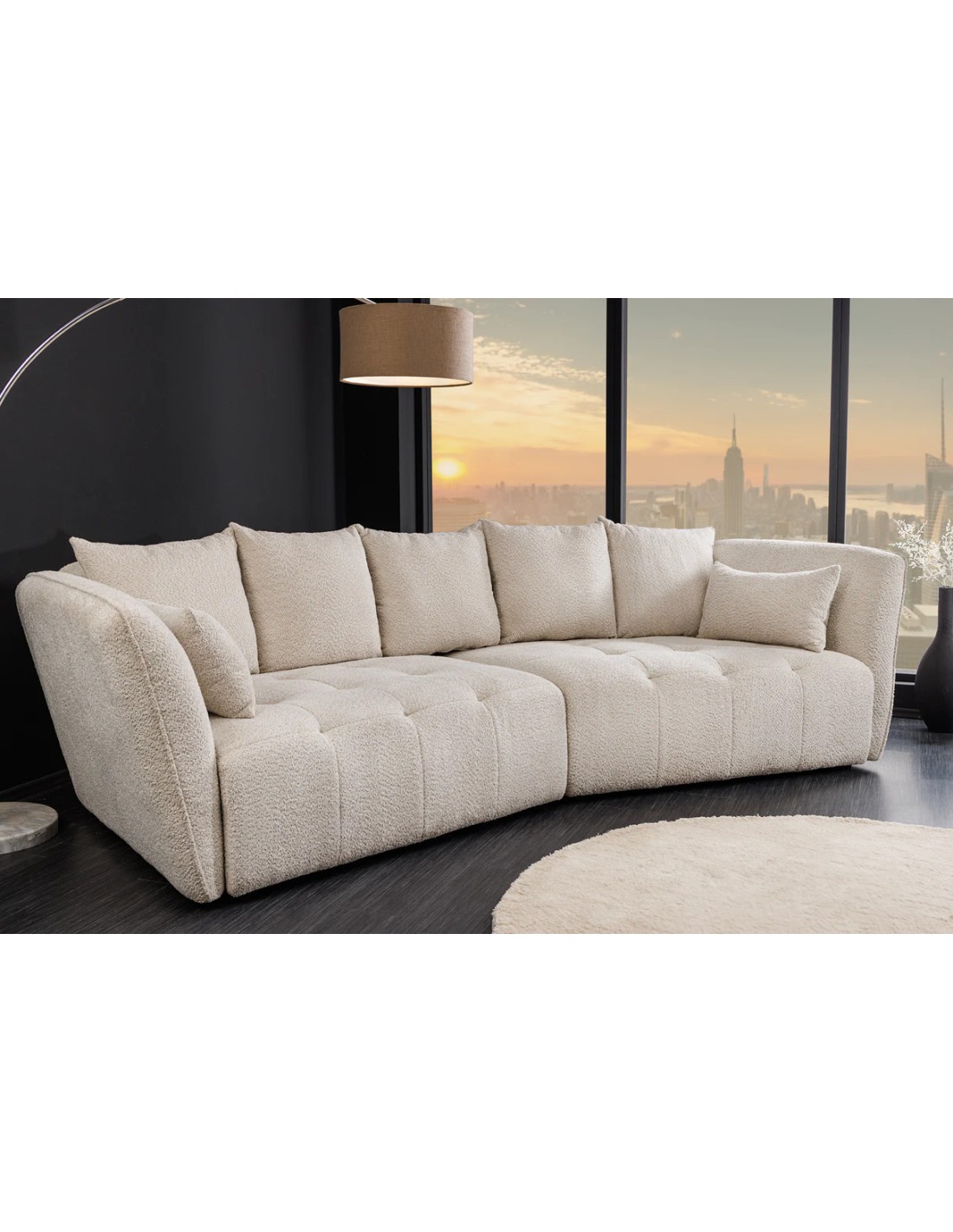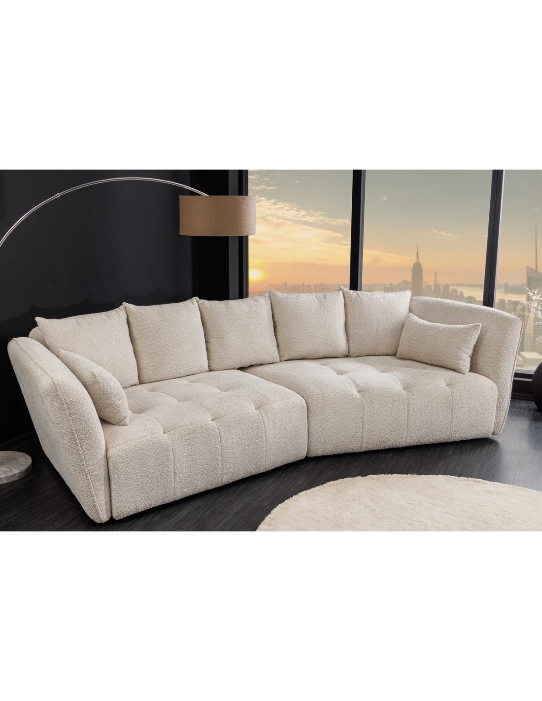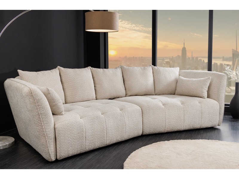 Le canapé ROYAL XL 295 cm d’Adenia Home transforme votre salon en un véritable havre de bien-être. Son revêtement bouclé champagne beige offre une texture douce et raffinée qui illumine votre intérieur. Grâce à son assise à ressorts ensachés et son rembourrage Nosag, il garantit un confort exceptionnel, aussi bien en position assise qu’allongée.