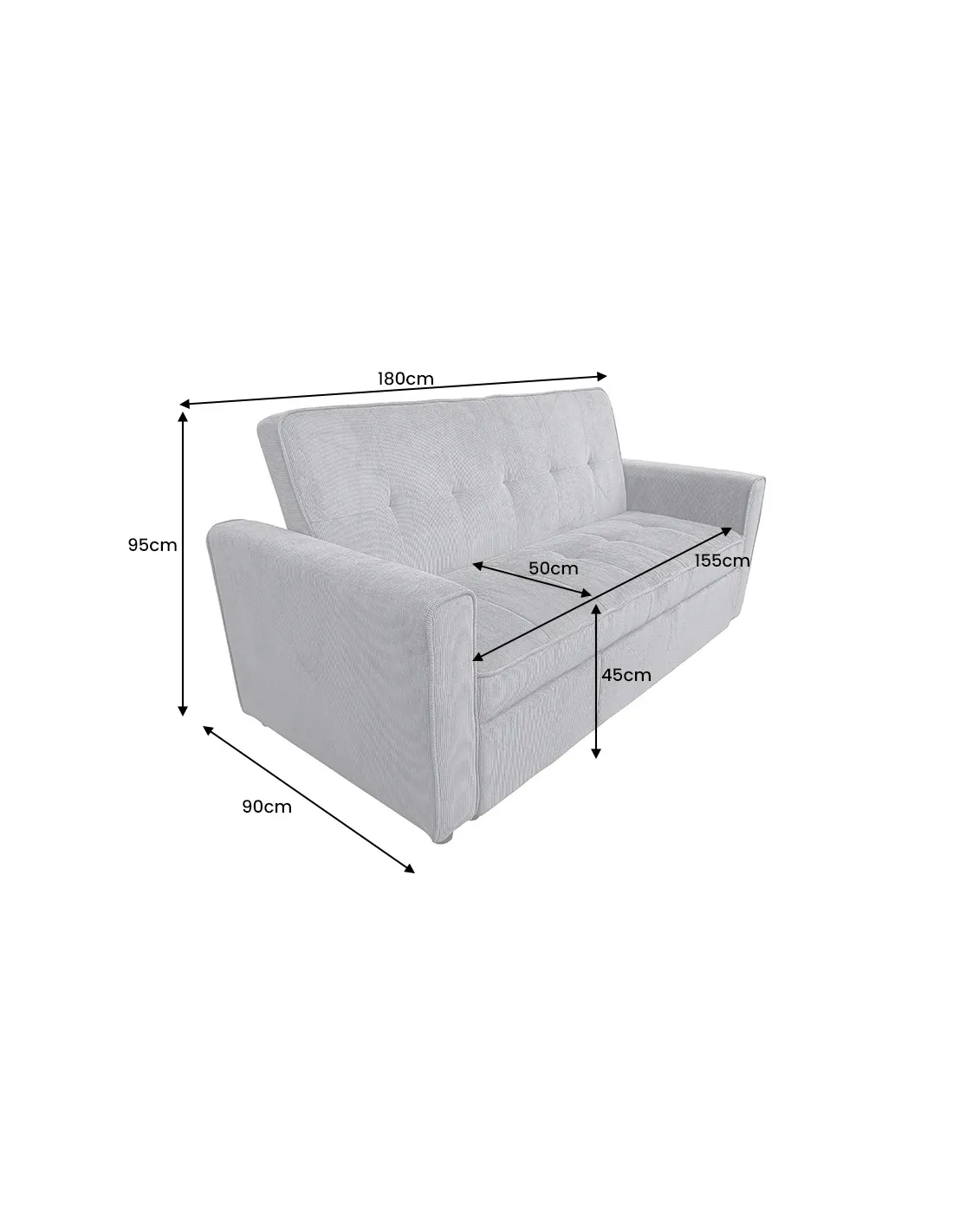 Une fois déplié, il propose une surface de couchage généreuse de 175 x 155 cm, idéale pour deux personnes.
