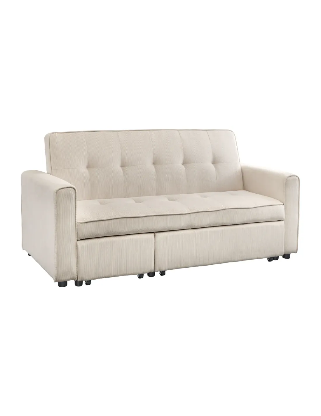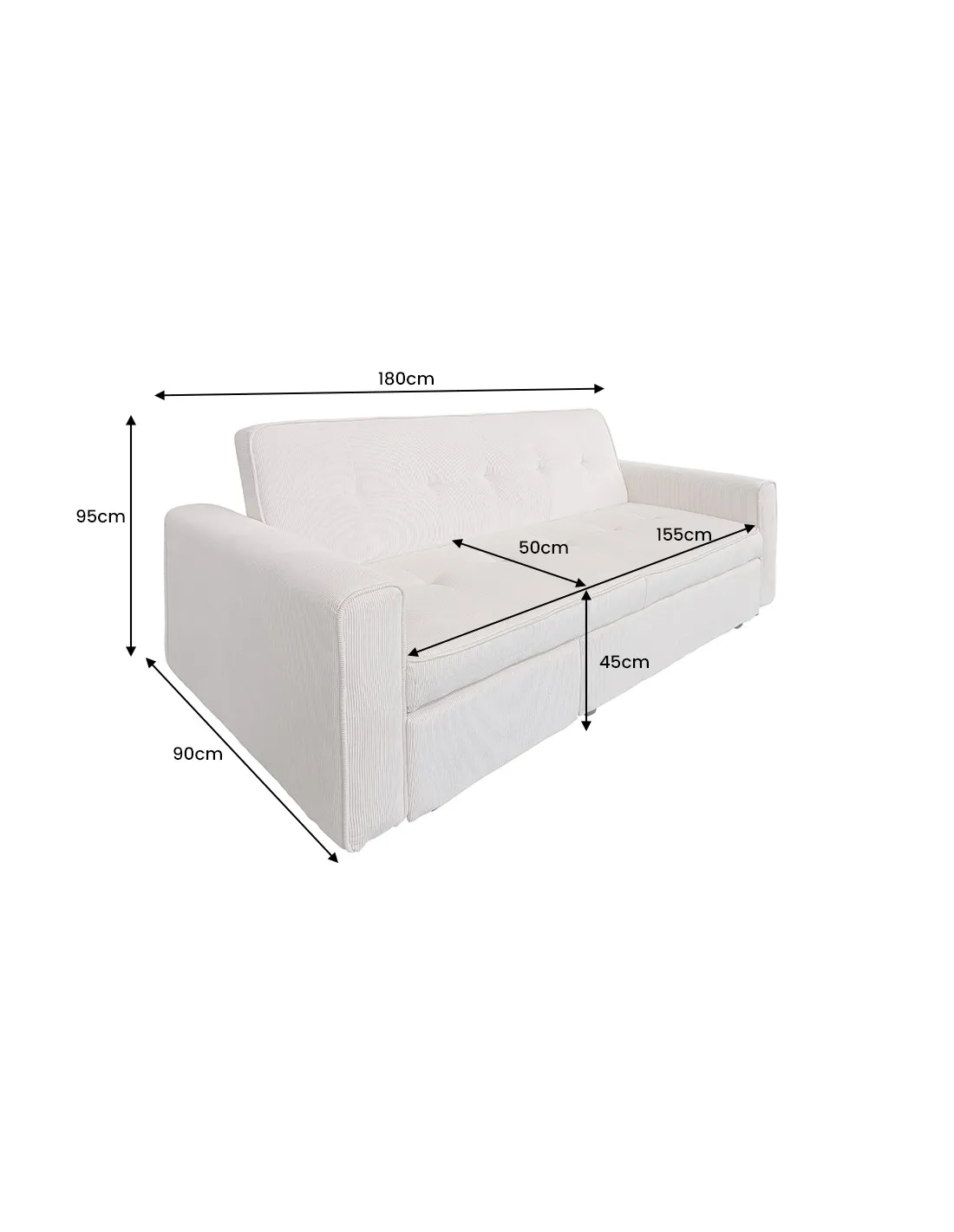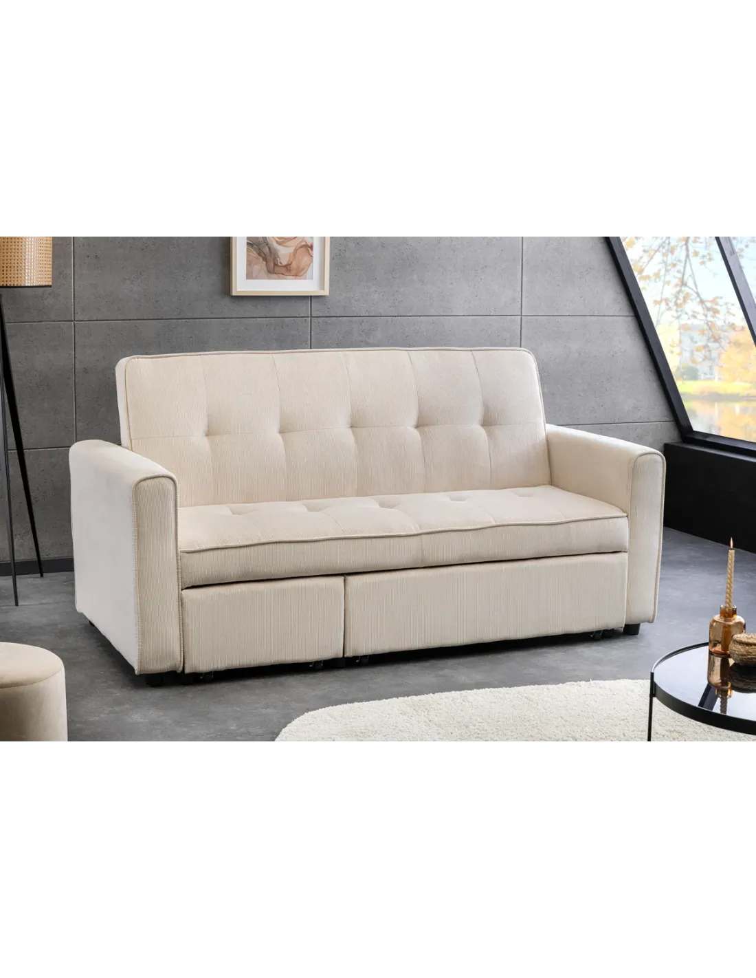 Canapé-lit extensible SMART, 180 cm, velours côtelé beige, canapé 2 places avec ressorts anti-affaissement