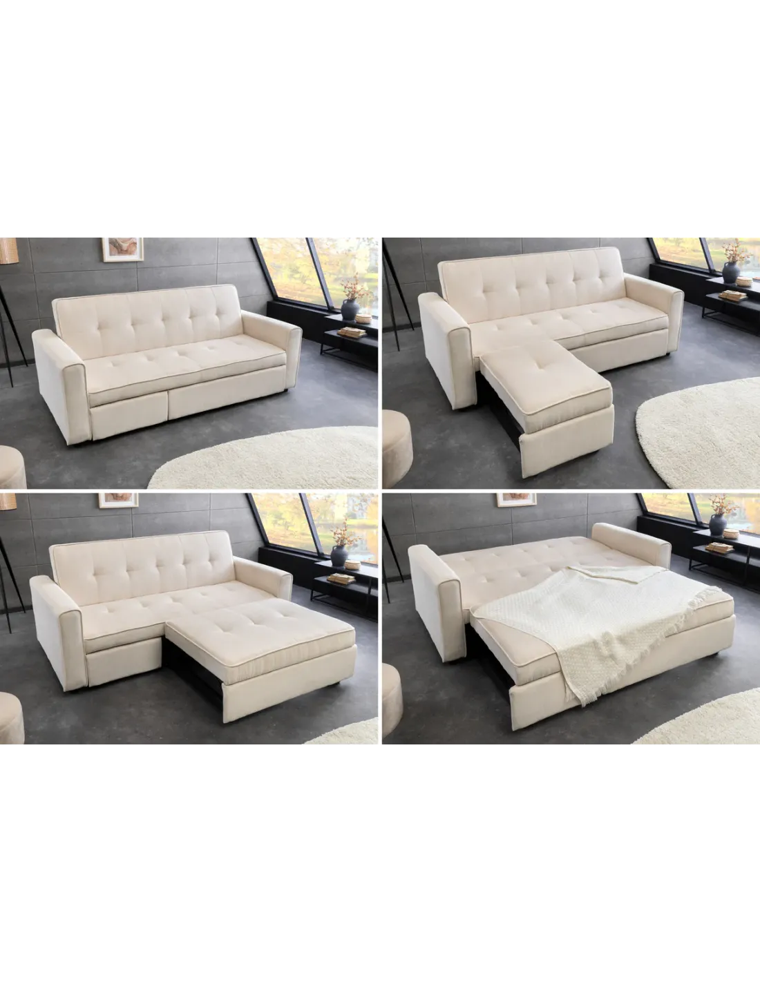 Grâce à son mécanisme de transformation simple et rapide, le canapé SMART se convertit facilement en lit confortable, parfait pour accueillir des invités ou pour un usage régulier.