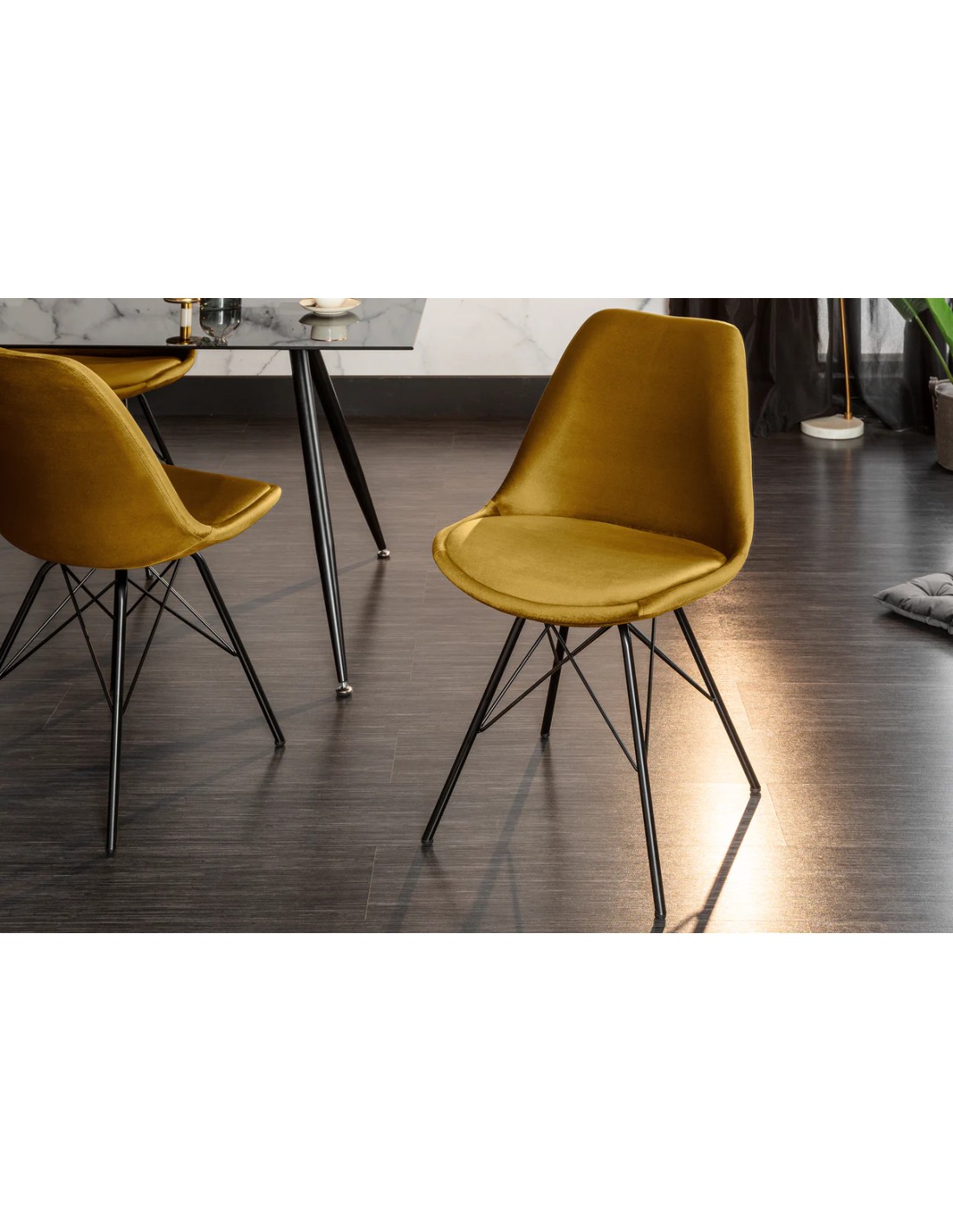 - Design : Le velours jaune moutarde apporte une touche de couleur et de chaleur, tandis que les pieds noirs ajoutent une touche moderne et sophistiquée.