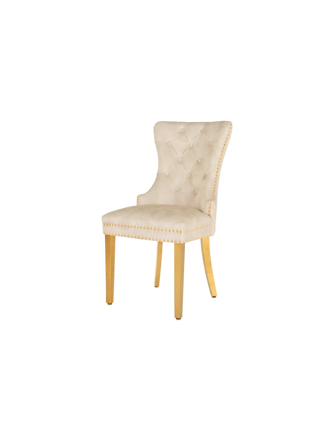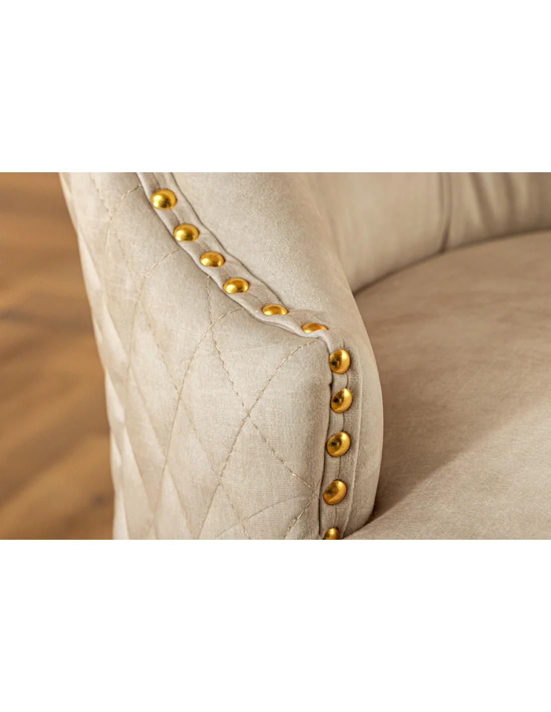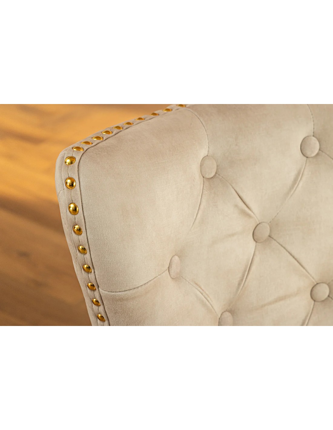 Le contraste entre le velours beige clair et les pieds dorés illumine la pièce et confère à votre décoration un cachet incomparable.