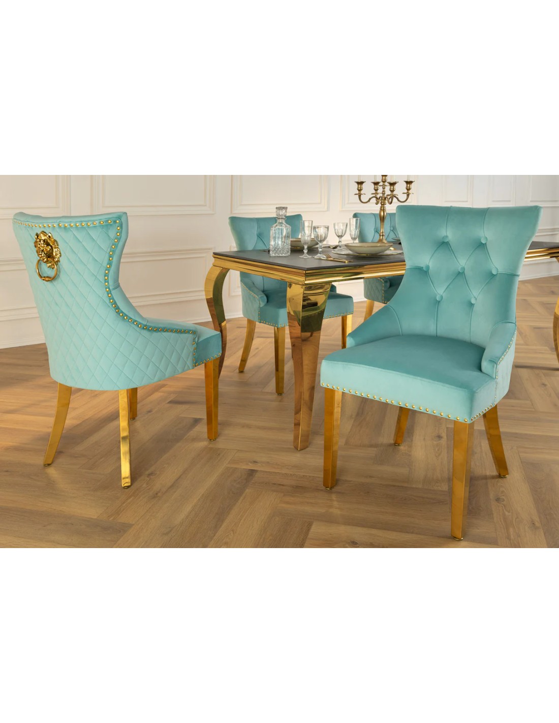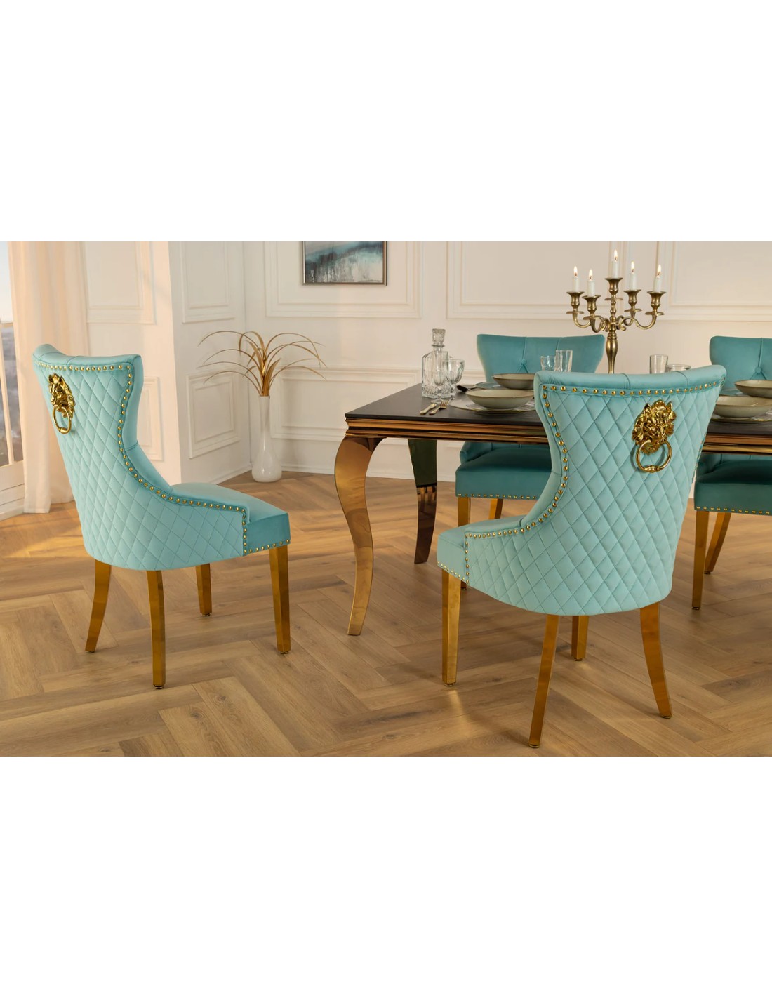 La poignée tête de lion dorée n’est pas seulement un élément décoratif, mais aussi un détail pratique pour déplacer facilement la chaise.