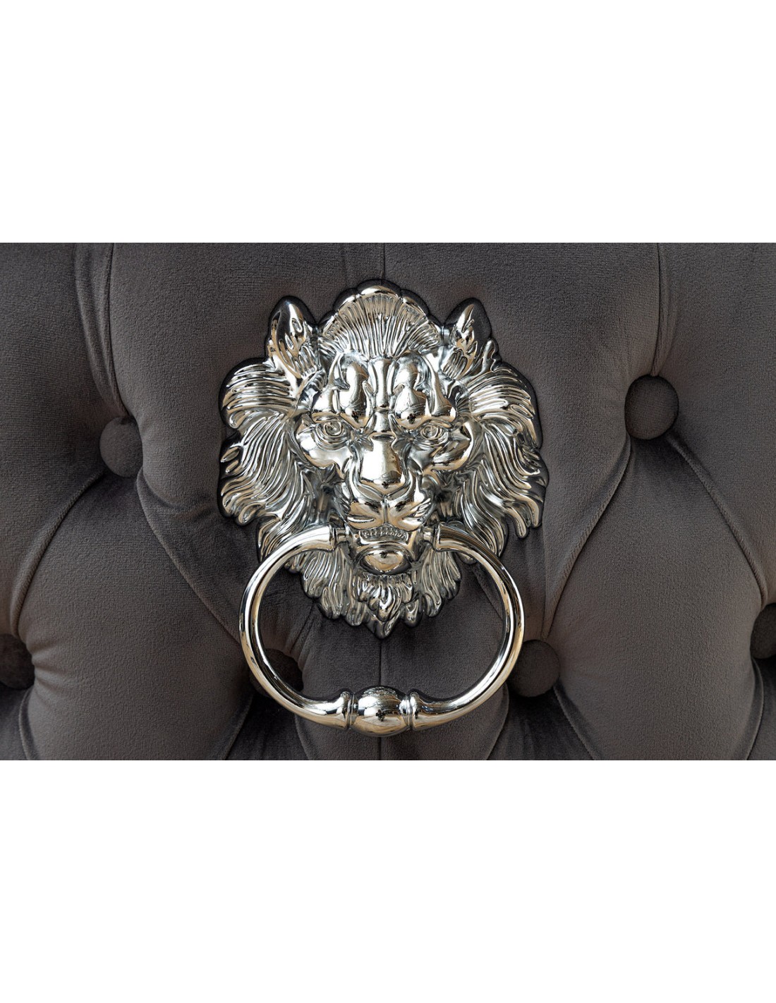 Le revêtement en velours gris, à la texture délicate et au toucher soyeux, s’accorde parfaitement avec la poignée tête de lion argentée, véritable signature de la collection CASTLE.