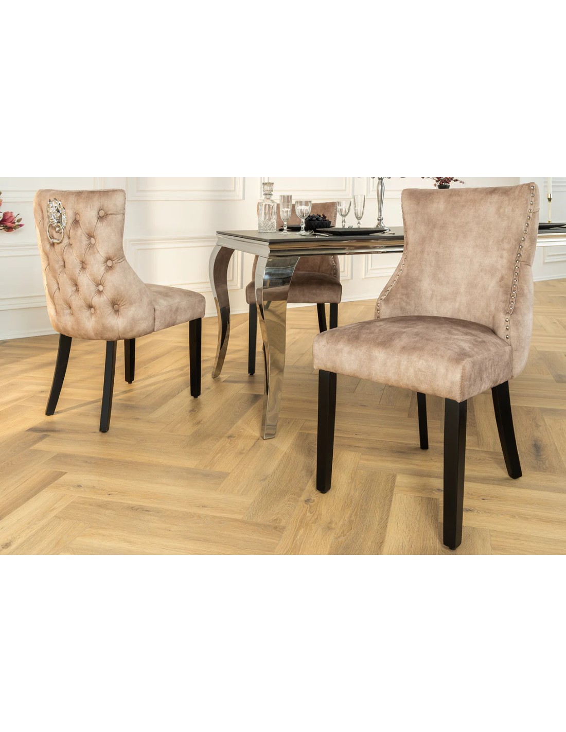 Les chaises CASTLE DELUXE séduisent par leur dossier capitonné emblématique du style Chesterfield et leur silhouette gracieuse.