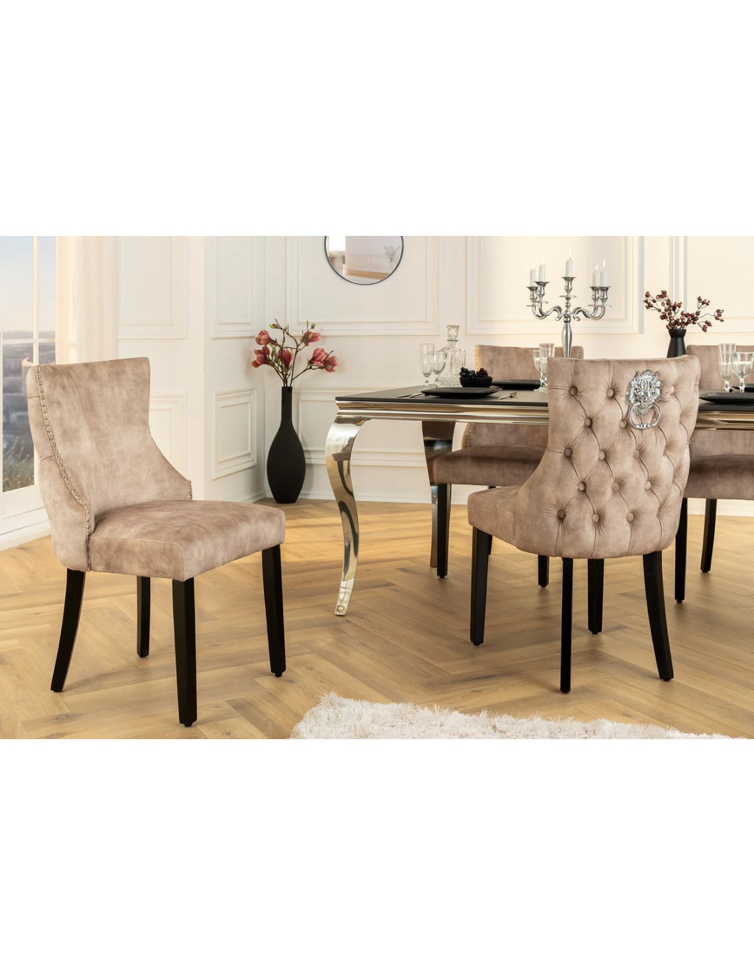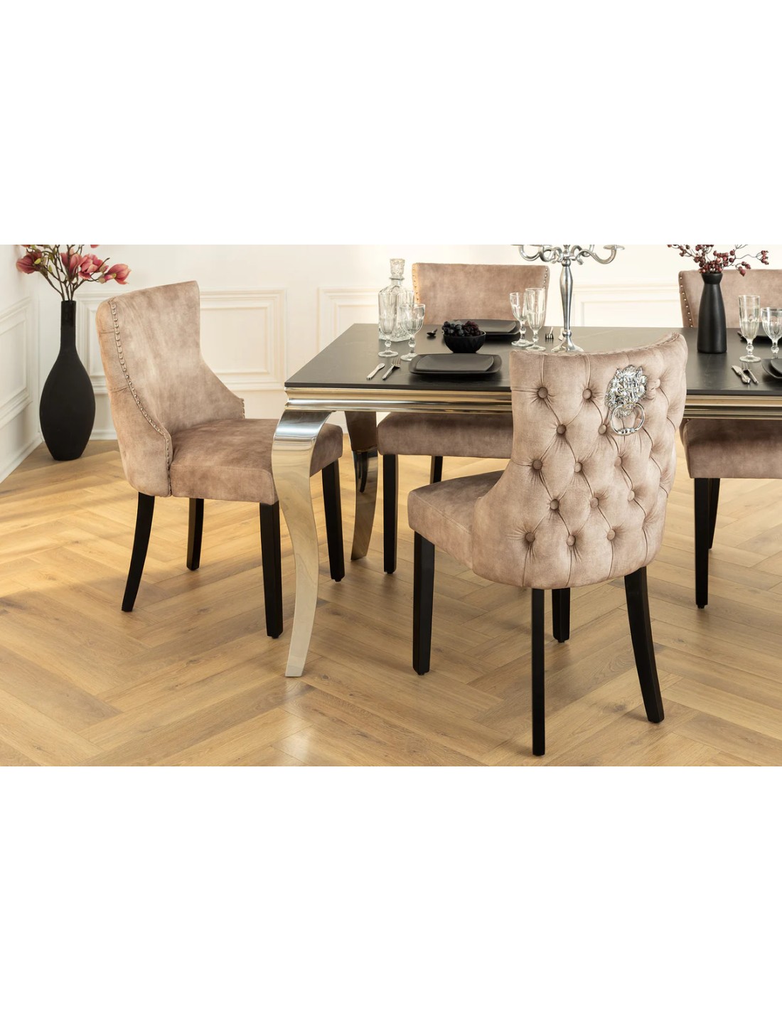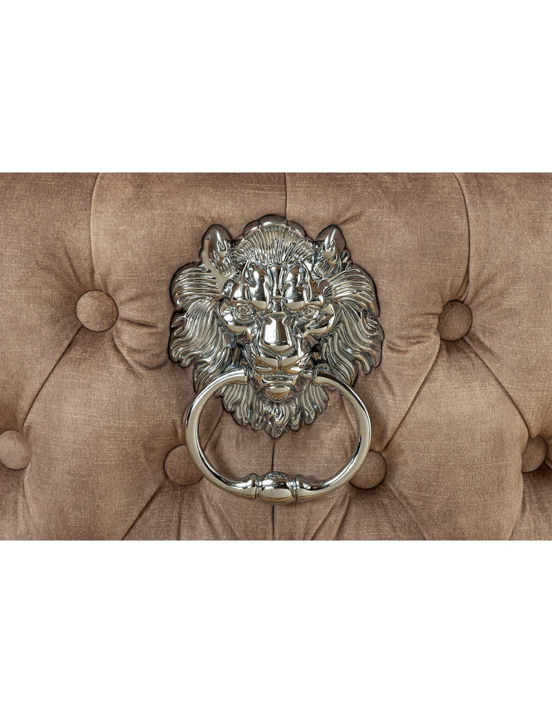 La poignée tête de lion argentée, à la fois élégante et pratique, permet de déplacer facilement la chaise tout en renforçant son allure majestueuse.