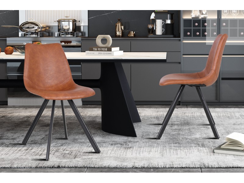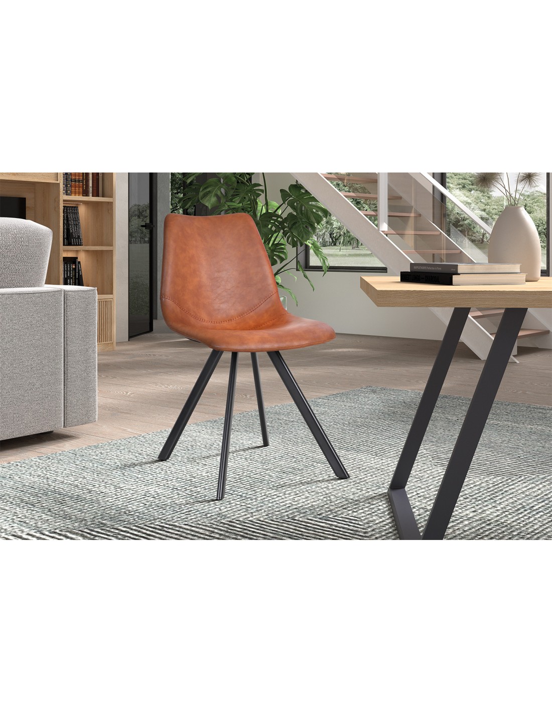 La chaise EMMA séduit par son style minimaliste et sa couleur cognac chaleureuse, qui s’accorde facilement à tous les types de décoration — moderne, vintage ou scandinave.