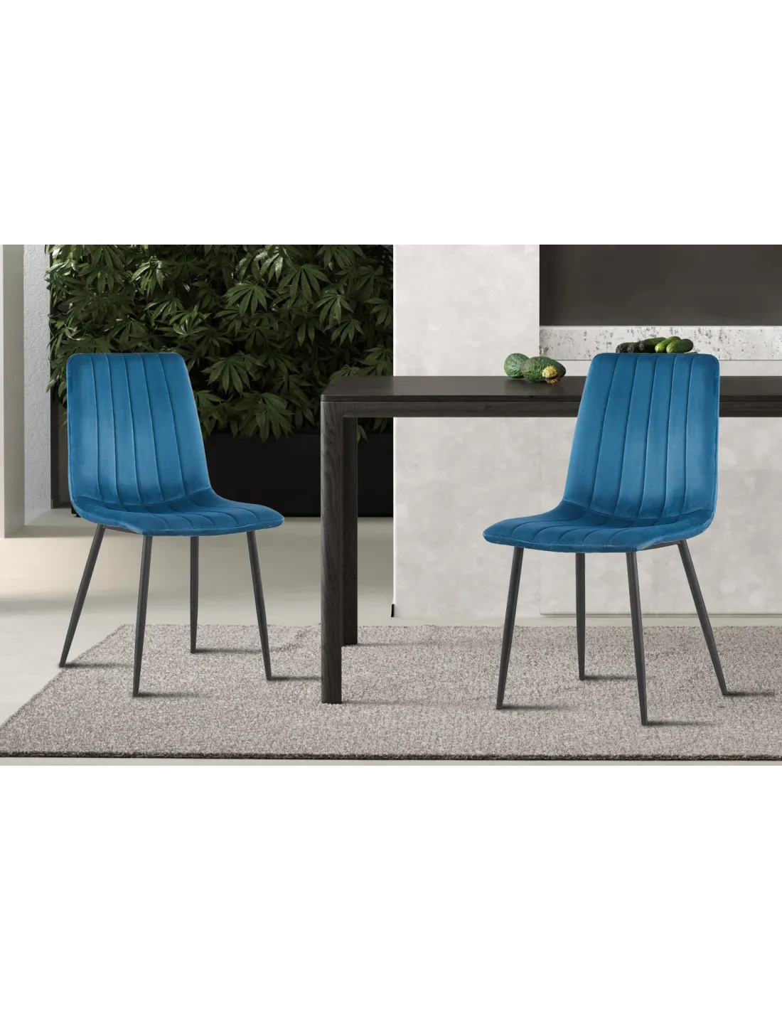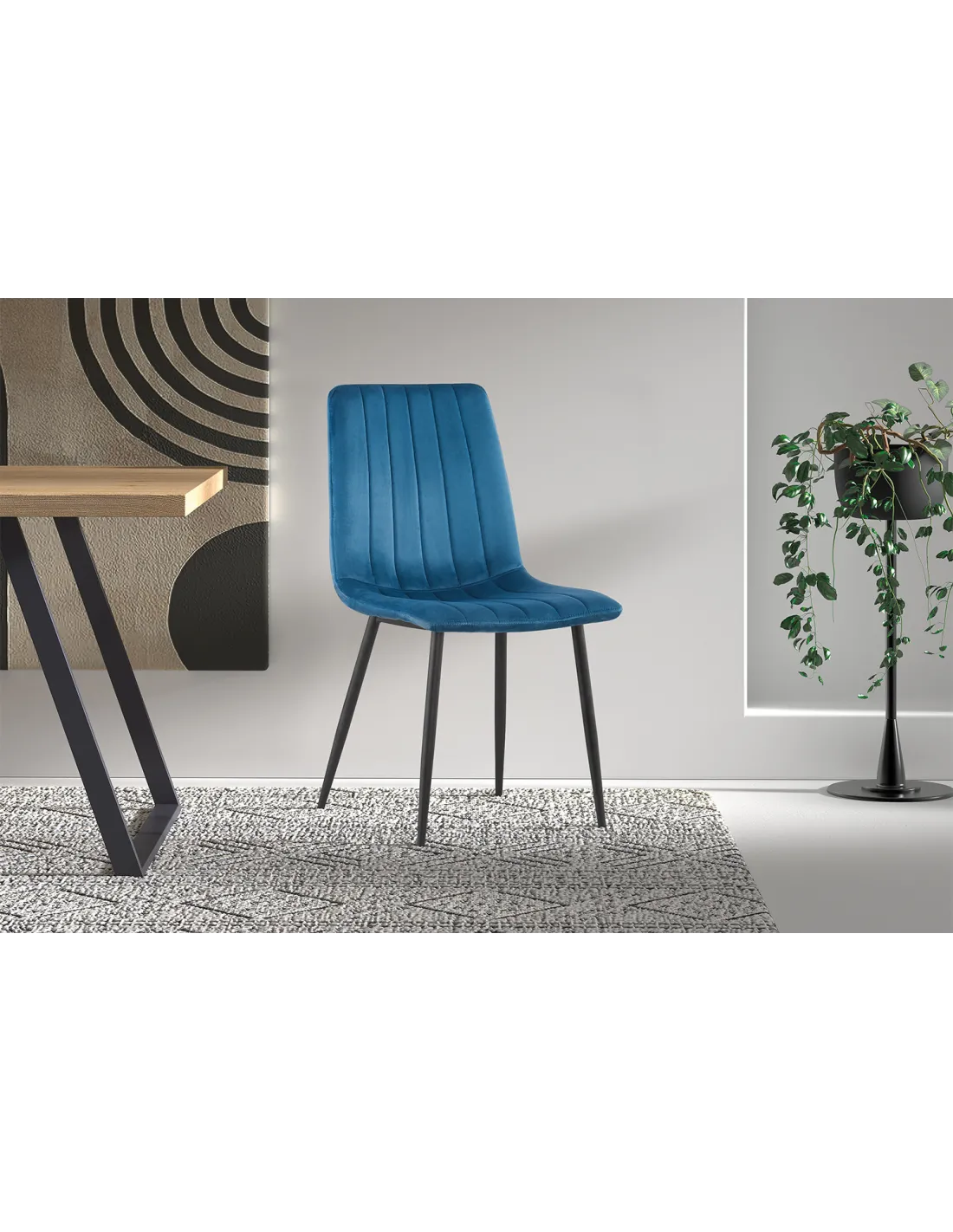 Apportez une touche chic et contemporaine à votre intérieur avec la chaise Willis en velours bleu. Son design épuré, son assise confortable et son piètement en métal noir en font un choix idéal pour une salle à manger élégante, une cuisine moderne ou un espace bureau raffiné.