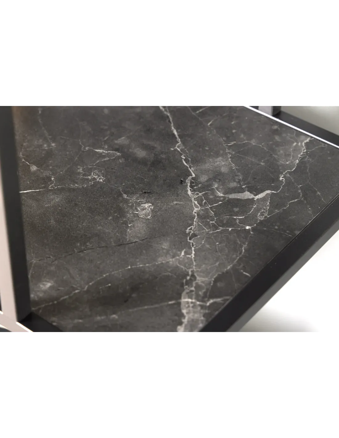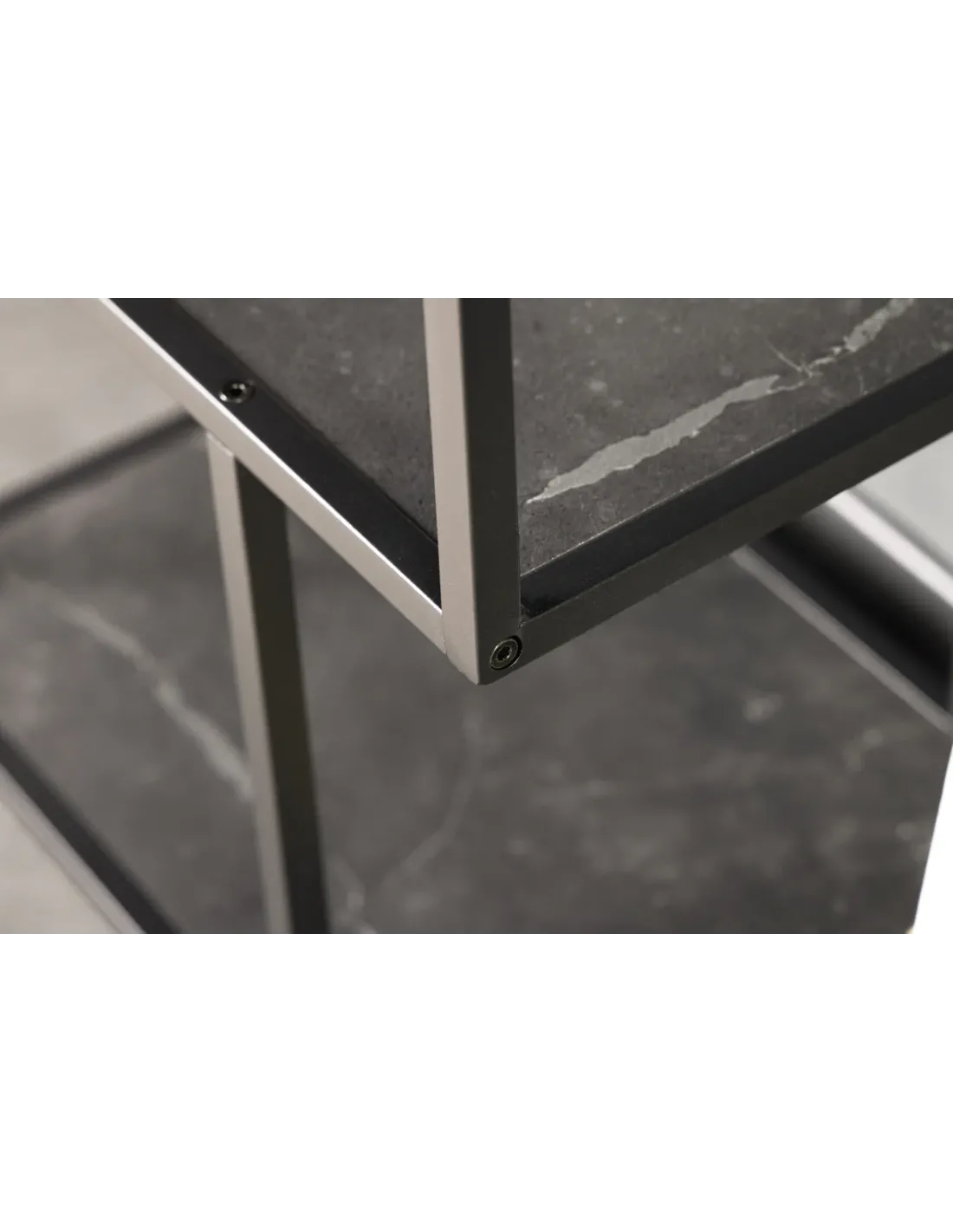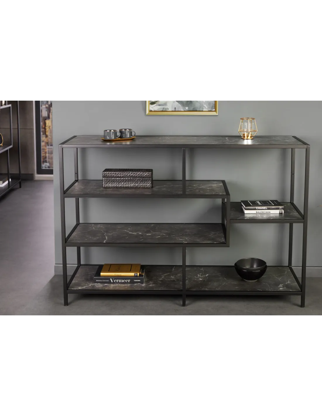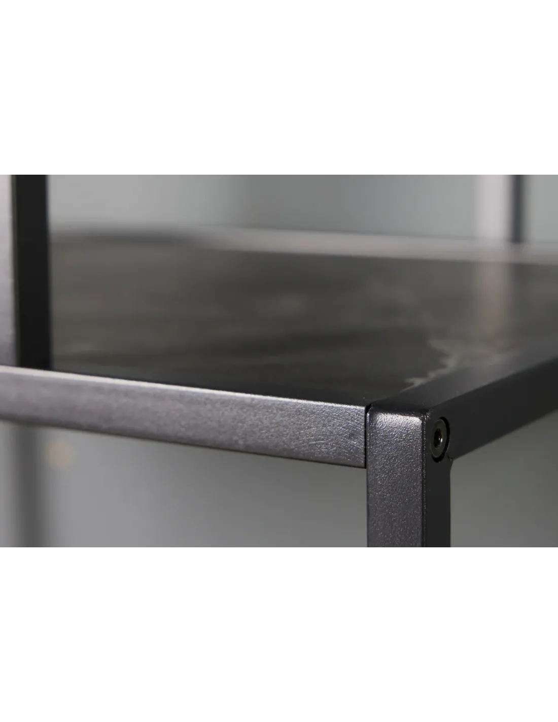 L’étagère SLIM LINE se distingue par sa superbe finition effet marbre anthracite, qui apporte une touche de sophistication à tout intérieur. L’association des panneaux anthracite et du cadre noir confère un style élégant et contemporain.
