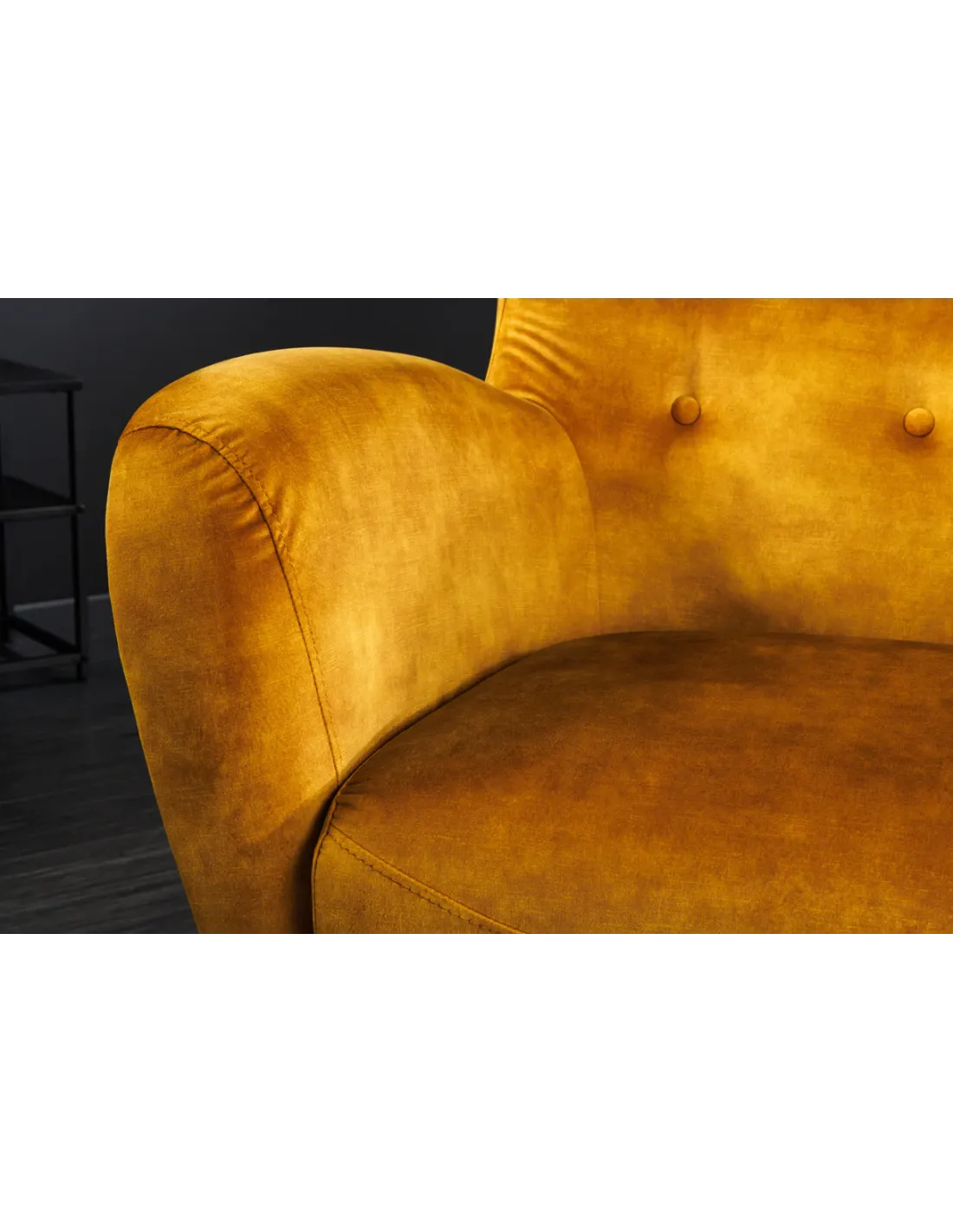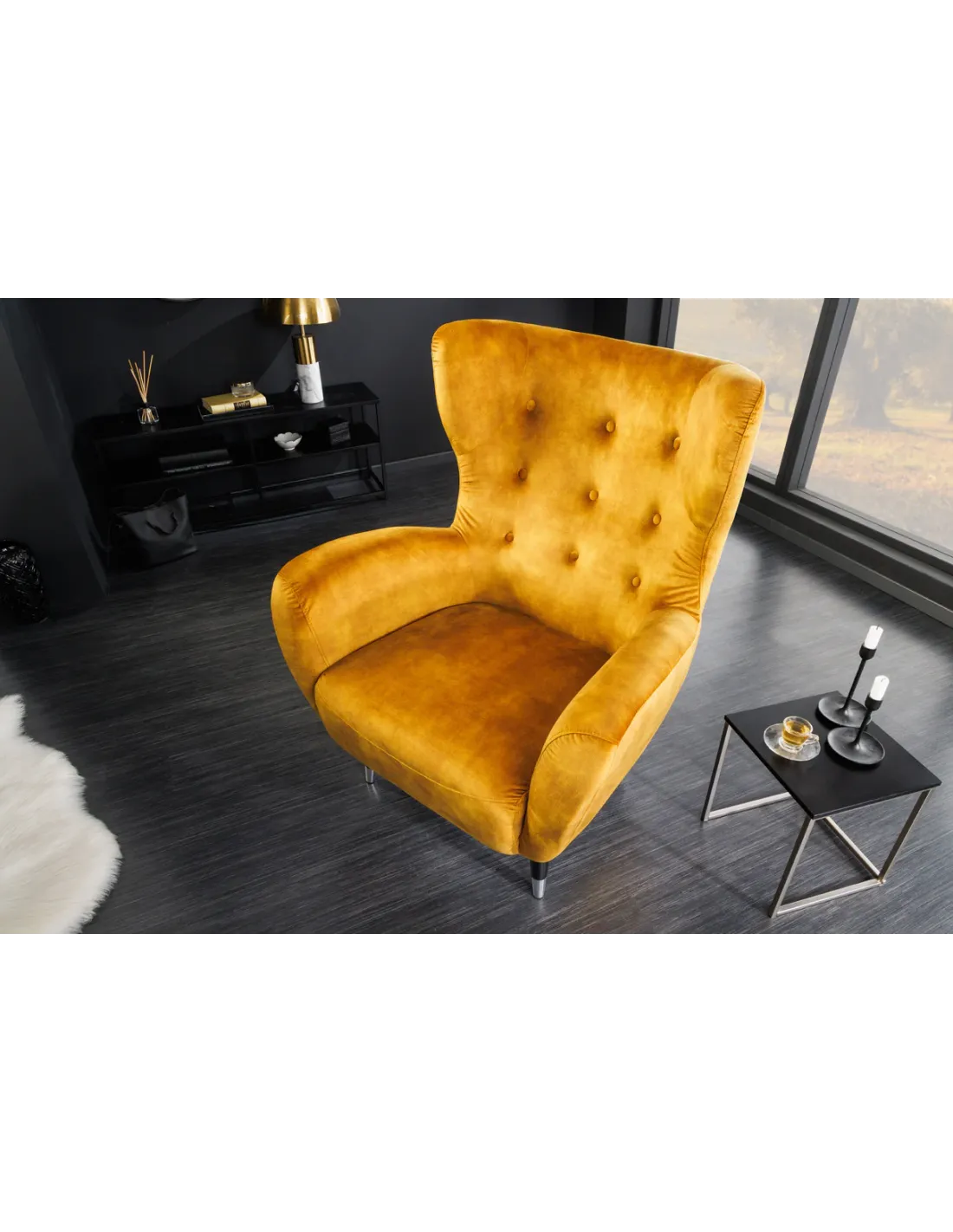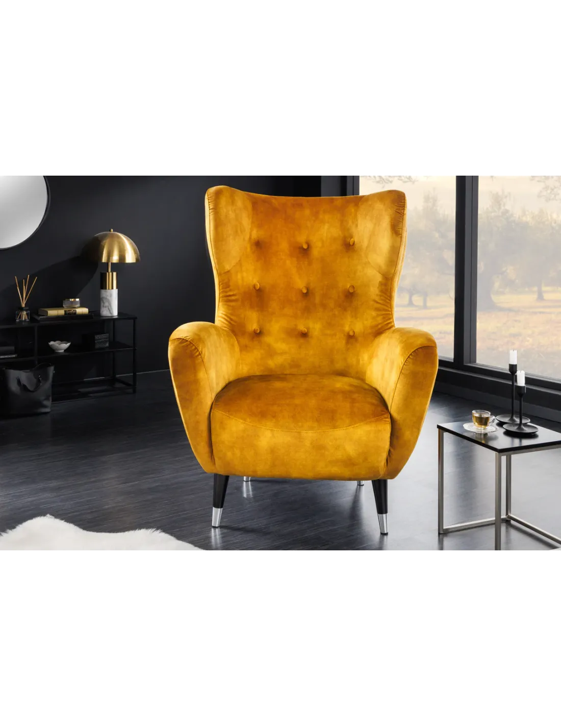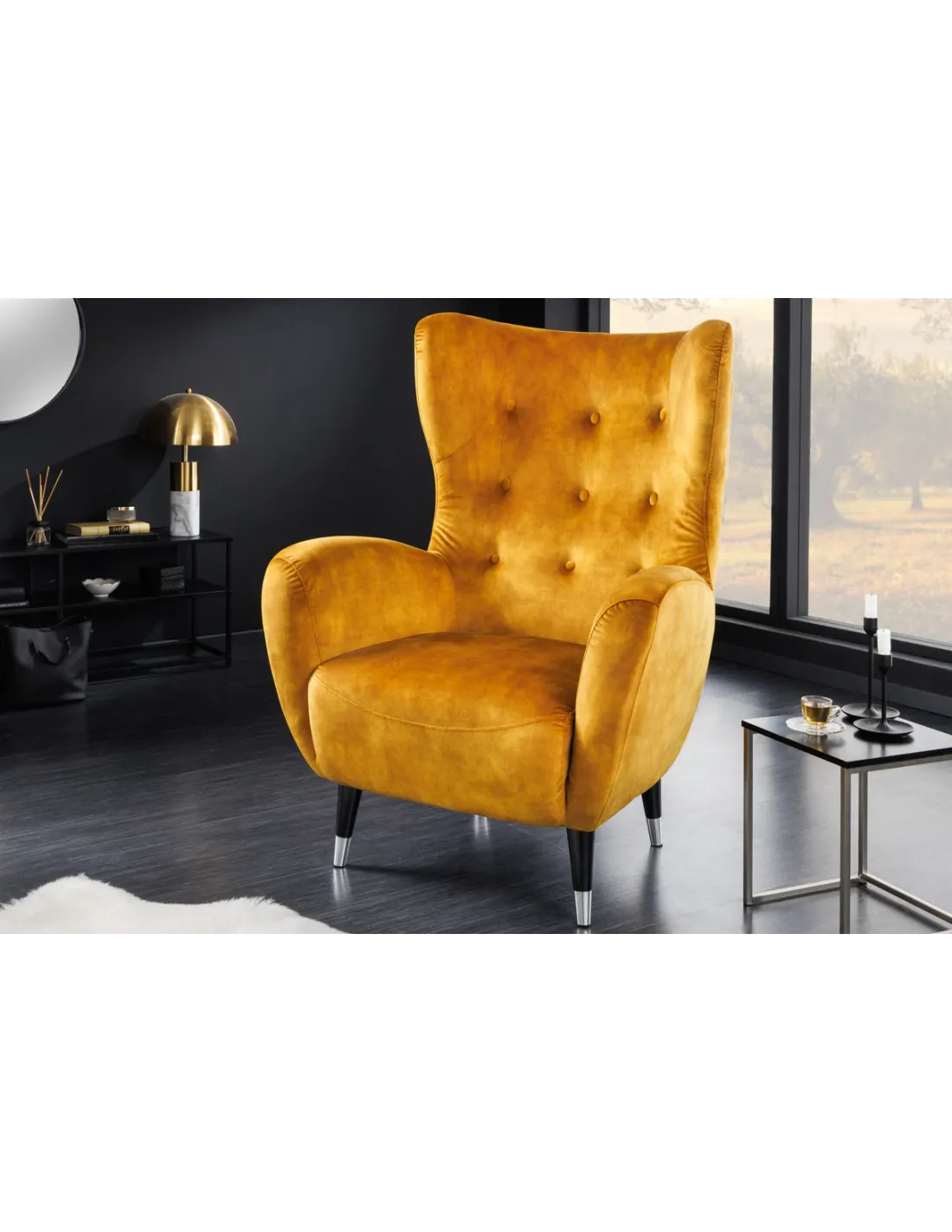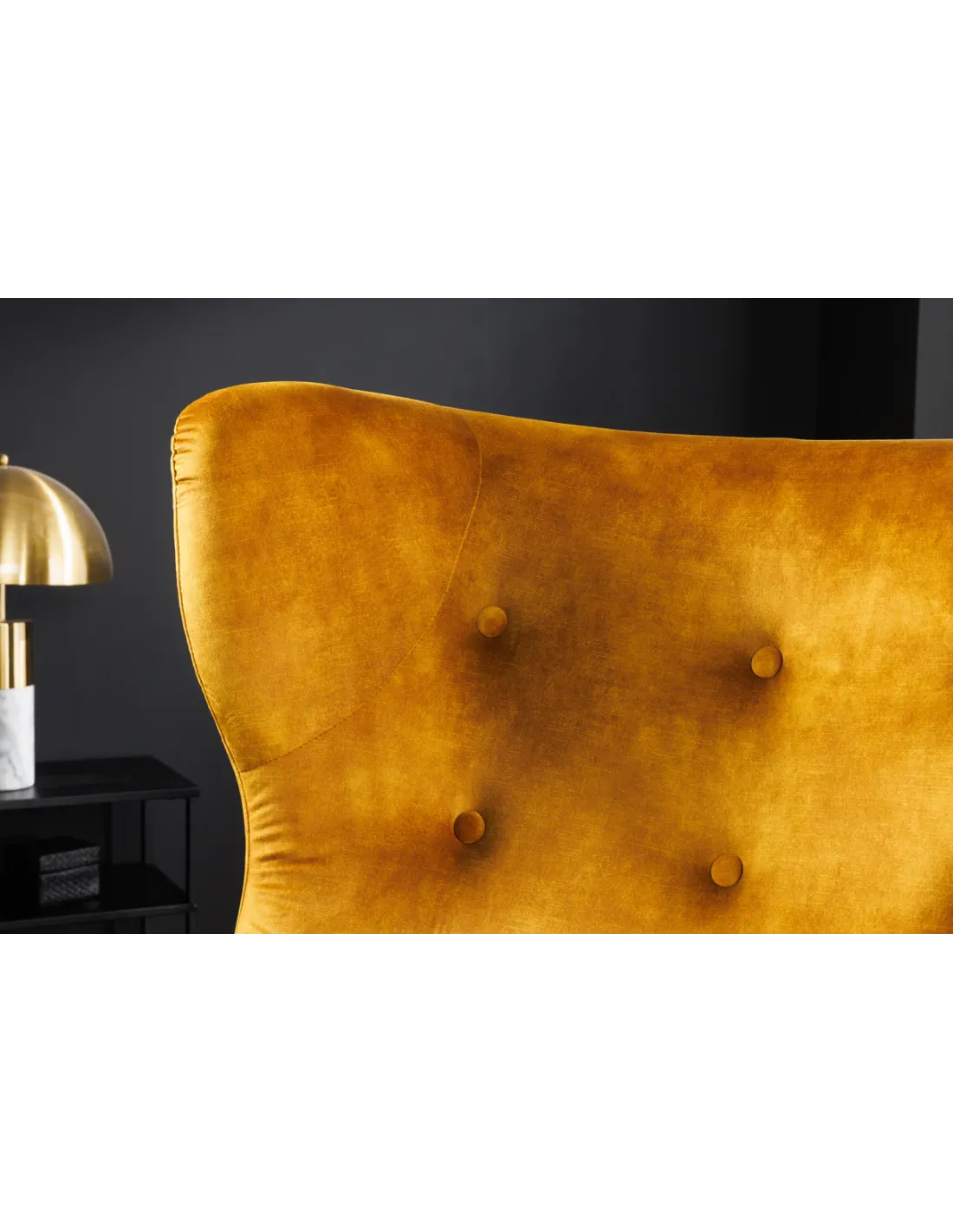 👉 Le fauteuil à oreilles DON jaune moutarde en velours est bien plus qu’un fauteuil : c’est une invitation à l’élégance et au confort, une pièce design qui illuminera votre intérieur.