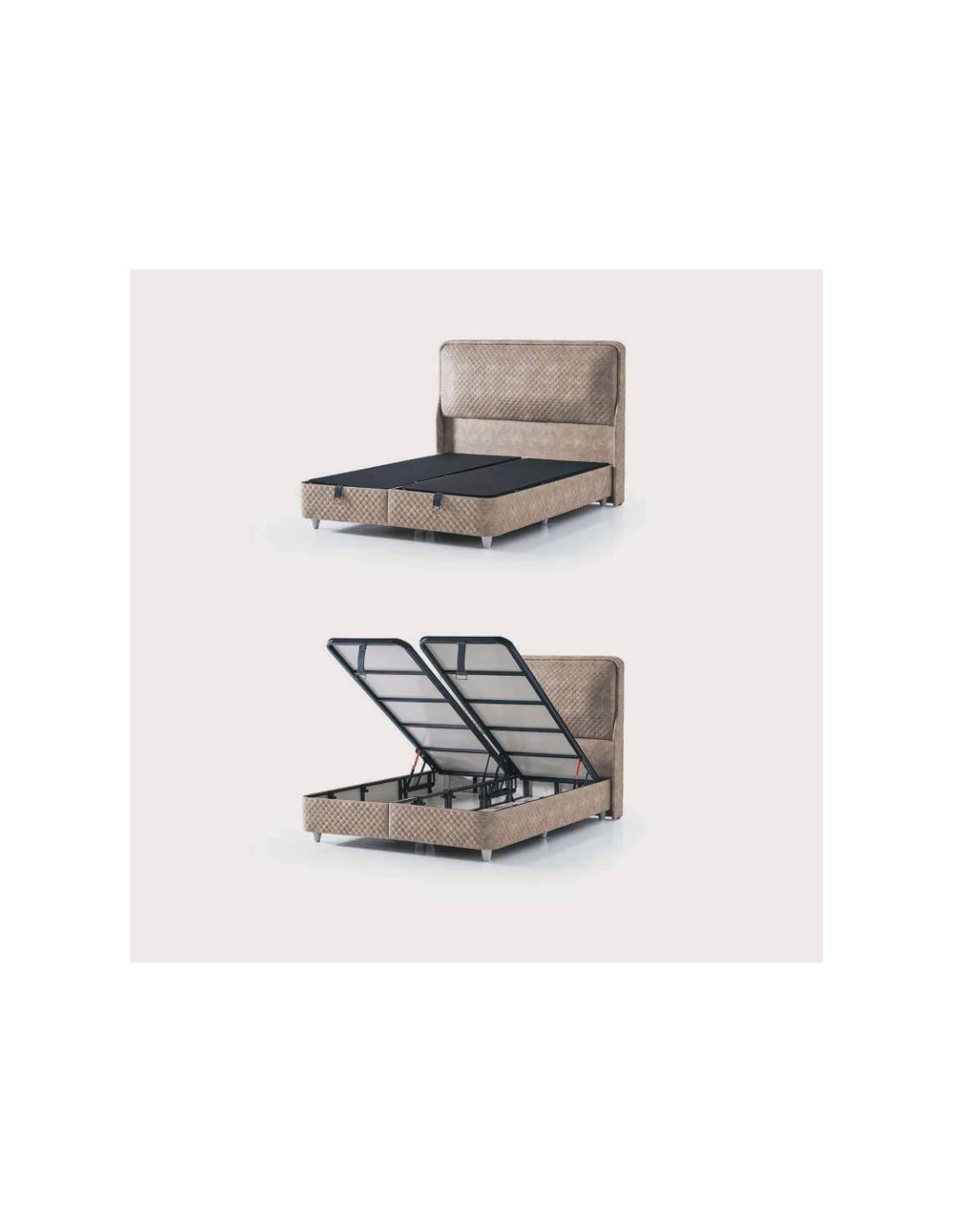 Espace de rangement intégré : sous le sommier, un vaste coffre permet de stocker aisément linge de lit, couettes ou vêtements saisonniers.