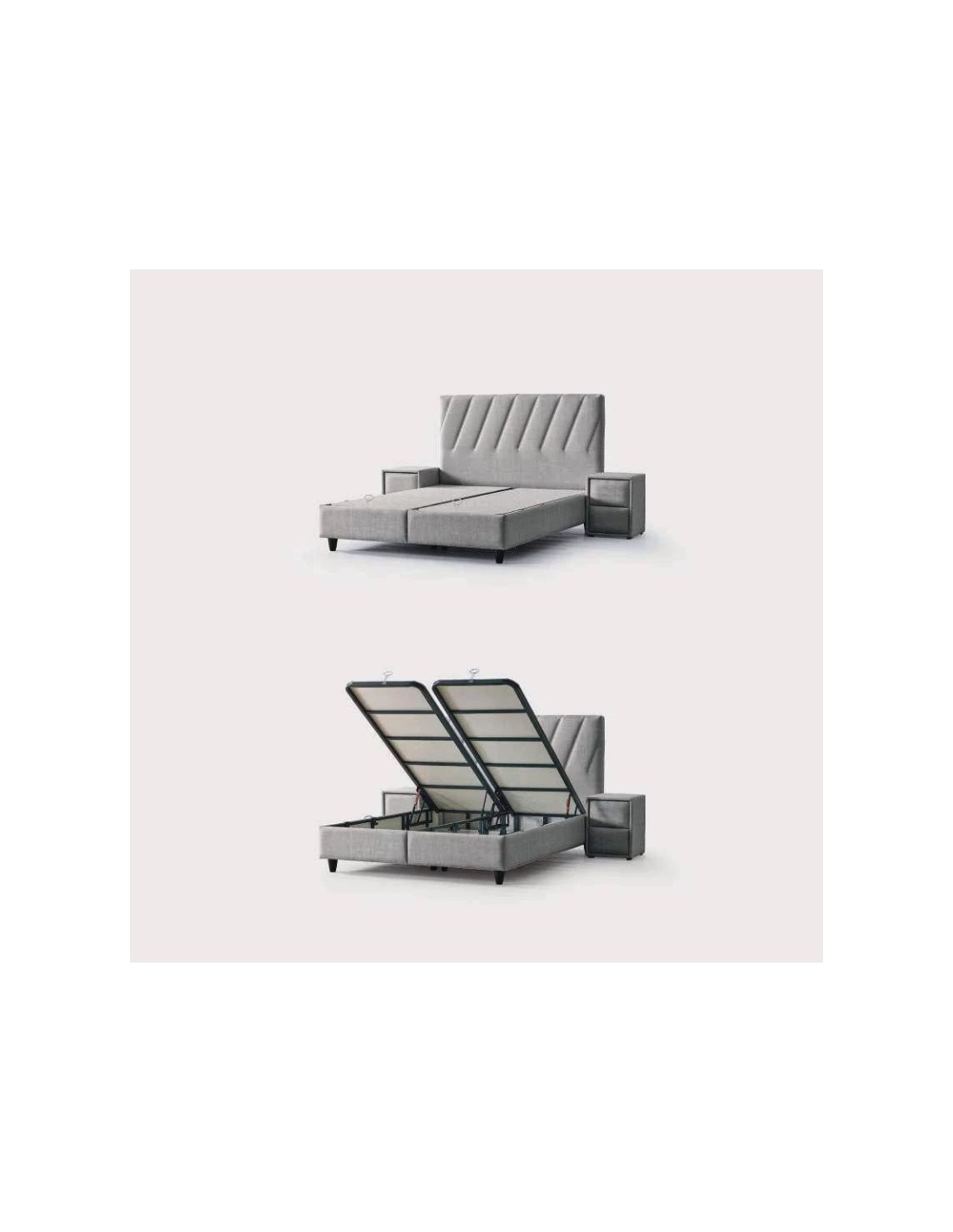 Sous le sommier, le coffre de rangement intégré offre un espace généreux pour ranger couettes, oreillers ou linge de lit.