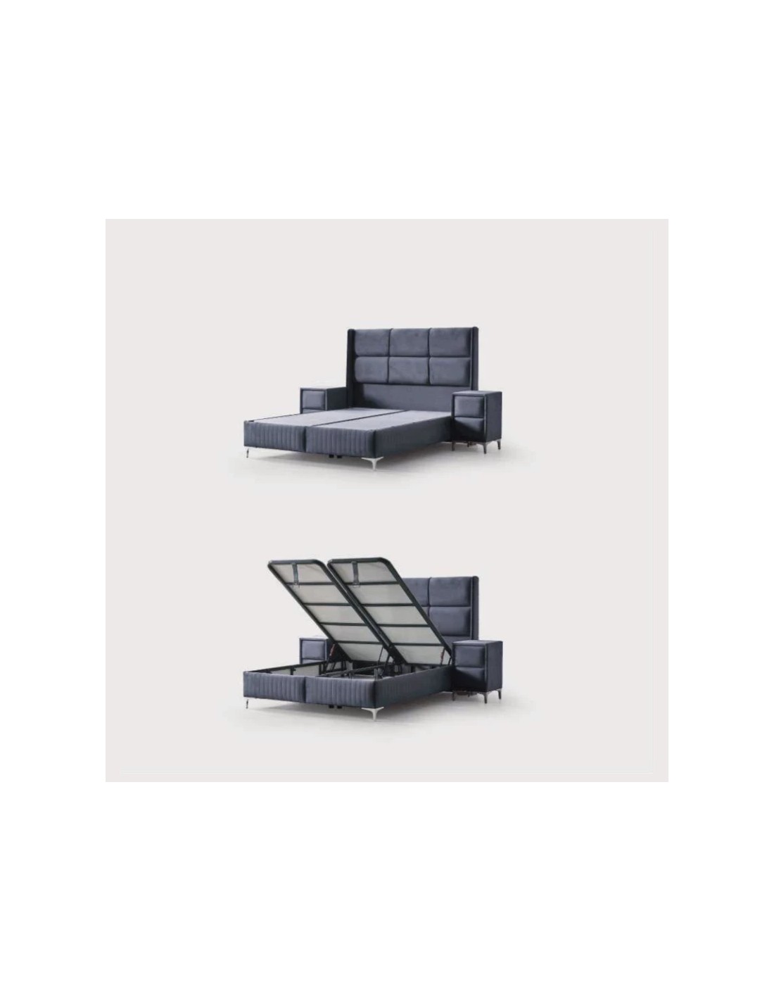 Coffre de rangement intégré sous le sommier, pratique et discret.