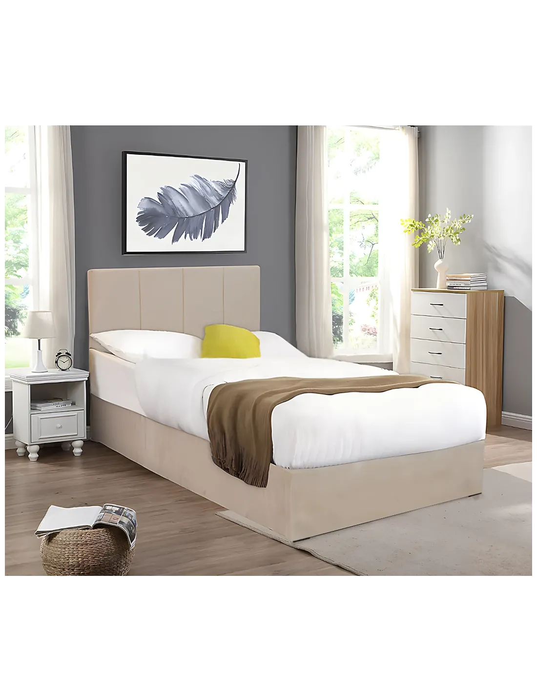 Avec ses lignes épurées et son tissu en velours doux au toucher, le lit CAÏRO offre un style contemporain et intemporel. Sa teinte beige lumineuse s’intègre facilement à tous les styles de décoration, du classique au moderne.