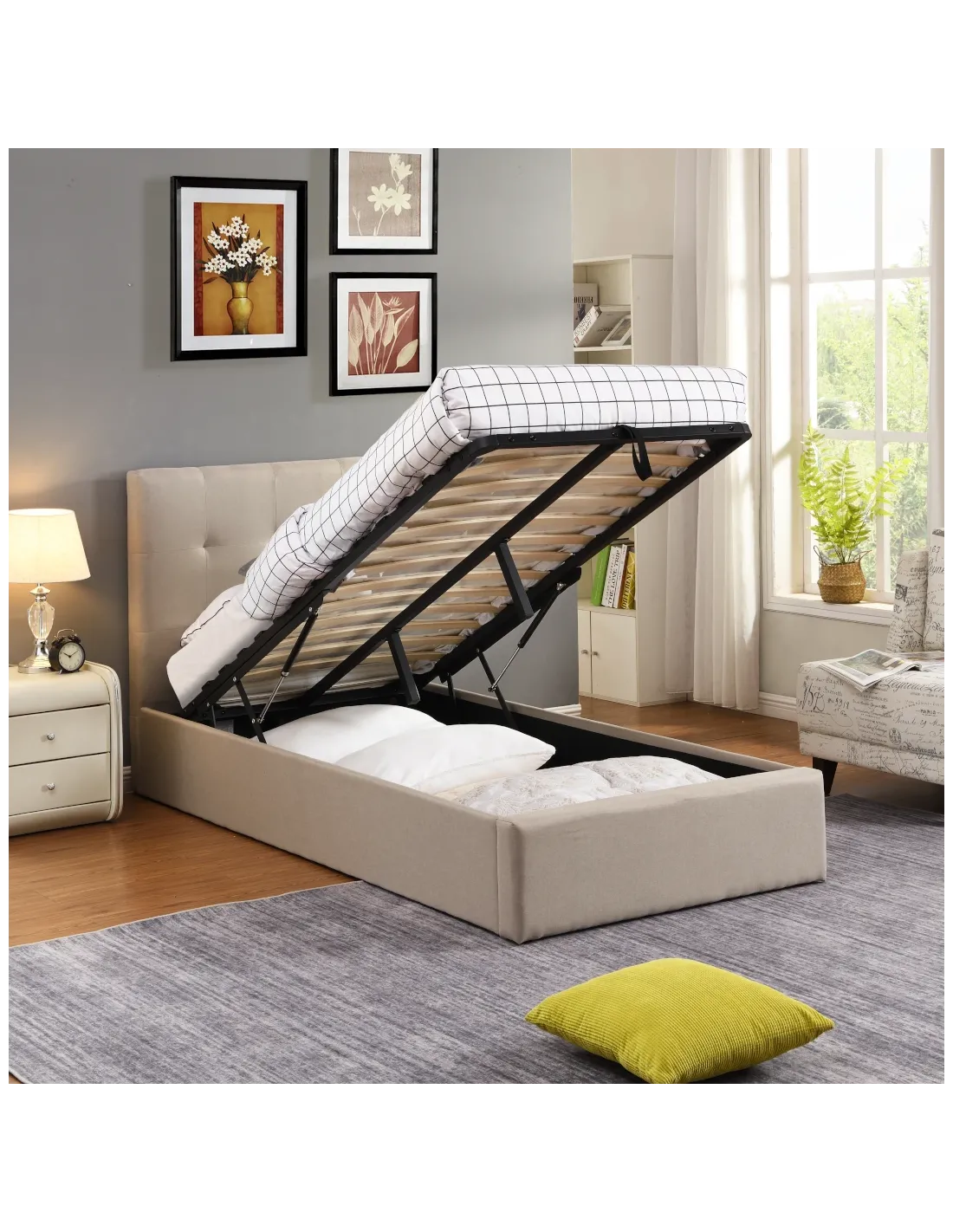 Lit Coffre DUBAÏ 1 Personne – 90 x 200 cm – Velours Beige Ignifuge
