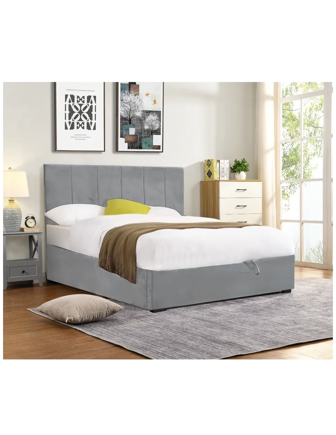 Ce lit séduit par son revêtement en velours doux au toucher et son design sobre, parfaitement adapté aux intérieurs modernes comme classiques.