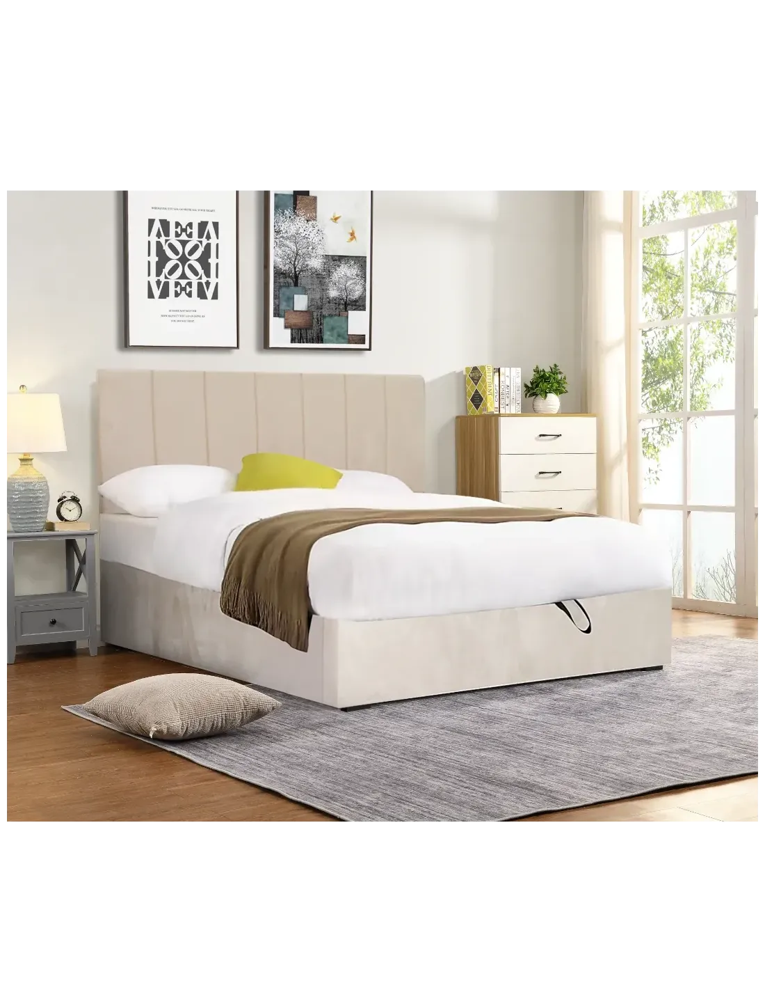 Avec sa tête de lit généreusement rembourrée et son revêtement en velvet beige, le lit CAÏRO offre une allure chic et intemporelle. Son tissu doux au toucher apporte une sensation de confort visuel et tactile, tout en respectant les normes UKFR ignifuges, gage de sécurité et de qualité.