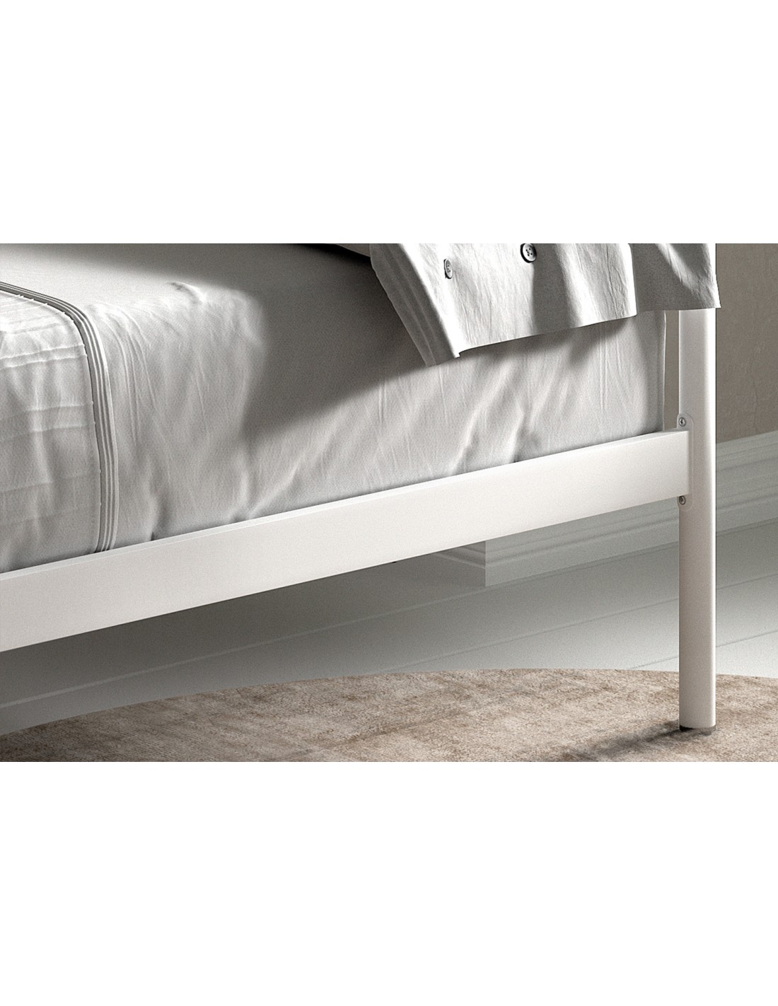 Conçu pour durer, le lit repose sur une structure porteuse en métal composée de tubes ronds robustes, reliés par des traverses et des supports verticaux. Ce cadre métallique est recouvert d’un revêtement protecteur qui résiste à l’usure et protège contre la corrosion, garantissant une stabilité optimale et une longévité remarquable.
