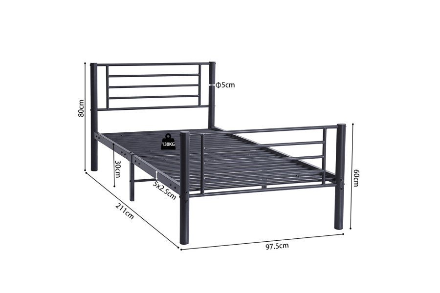 Grâce à sa structure métallique bien pensée, ce lit allie légèreté visuelle et solidité réelle. Il s’adapte parfaitement à un matelas standard 90x200 cm, offrant un couchage confortable aussi bien pour les enfants que pour les adultes. Idéal pour les chambres d’amis, d’adolescents ou les petits espaces, il allie praticité et élégance.