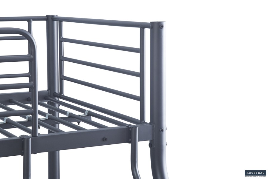 Le lit superposé “Trio” métal 140/90x200 cm gris foncé allie solidité, sécurité et modernité. Sa conception en acier, ses barrières protectrices et son design compact en font une solution idéale pour optimiser l’espace sans compromis sur le confort ni la durabilité.