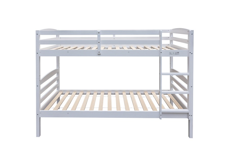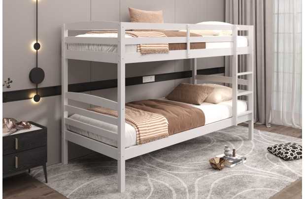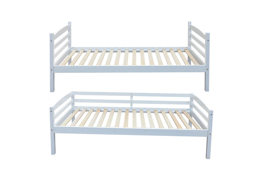 Le lit superposé “Roy” 90x200 cm blanc divisible combine solidité, modularité et design élégant. Sa construction en pin massif, ses barrières de sécurité intégrées et sa capacité à se diviser en deux lits simples en font un choix idéal pour les familles et chambres partagées, offrant sécurité, confort et flexibilité.