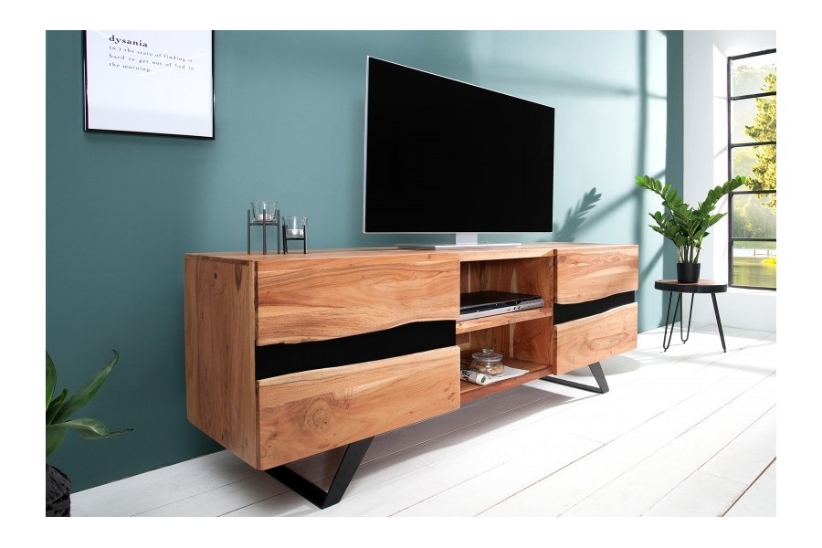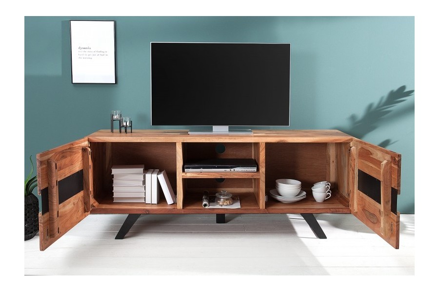 Sa structure équilibrée et ses lignes épurées s’intègrent parfaitement dans tous les styles d’intérieur – du contemporain au rustique chic. Grâce à ses espaces de rangement ouverts et fermés, il offre une solution pratique pour organiser vos appareils multimédias, vos accessoires ou vos objets décoratifs.