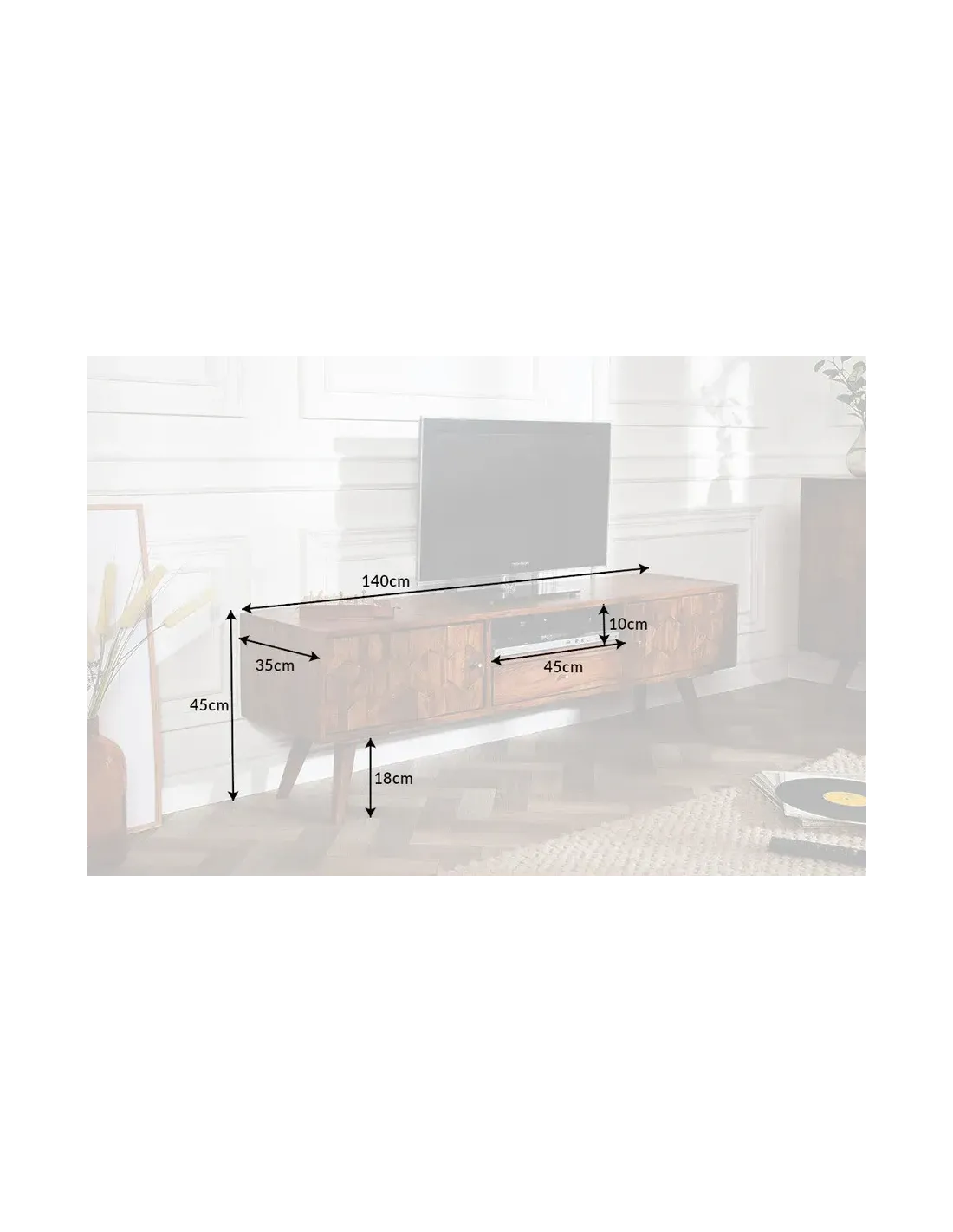 Caractéristiques techniques du meuble TV bois massif sheesham