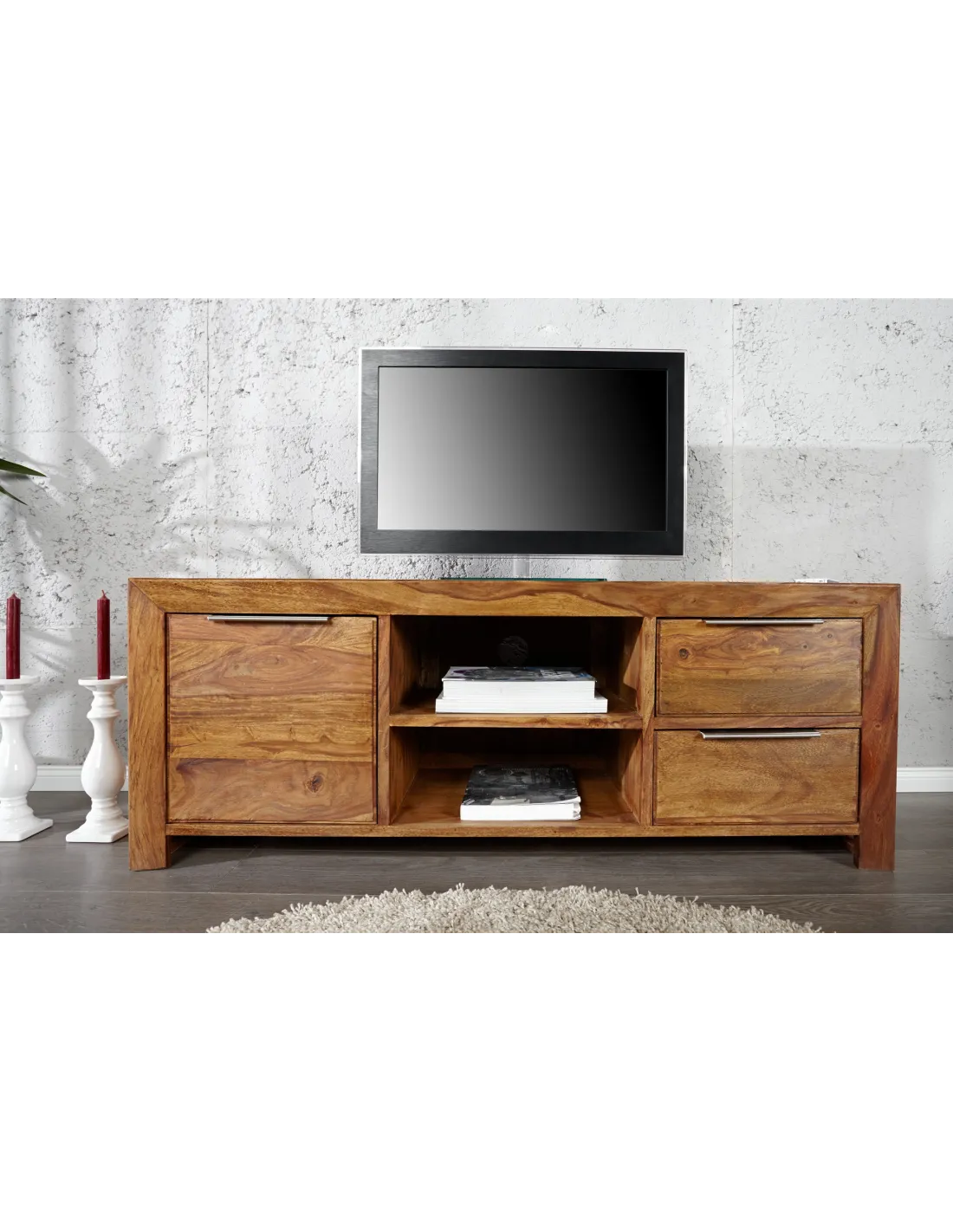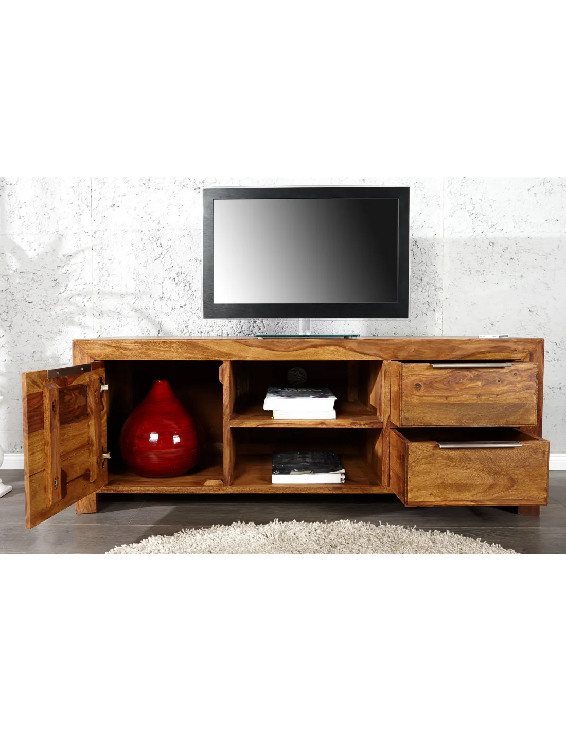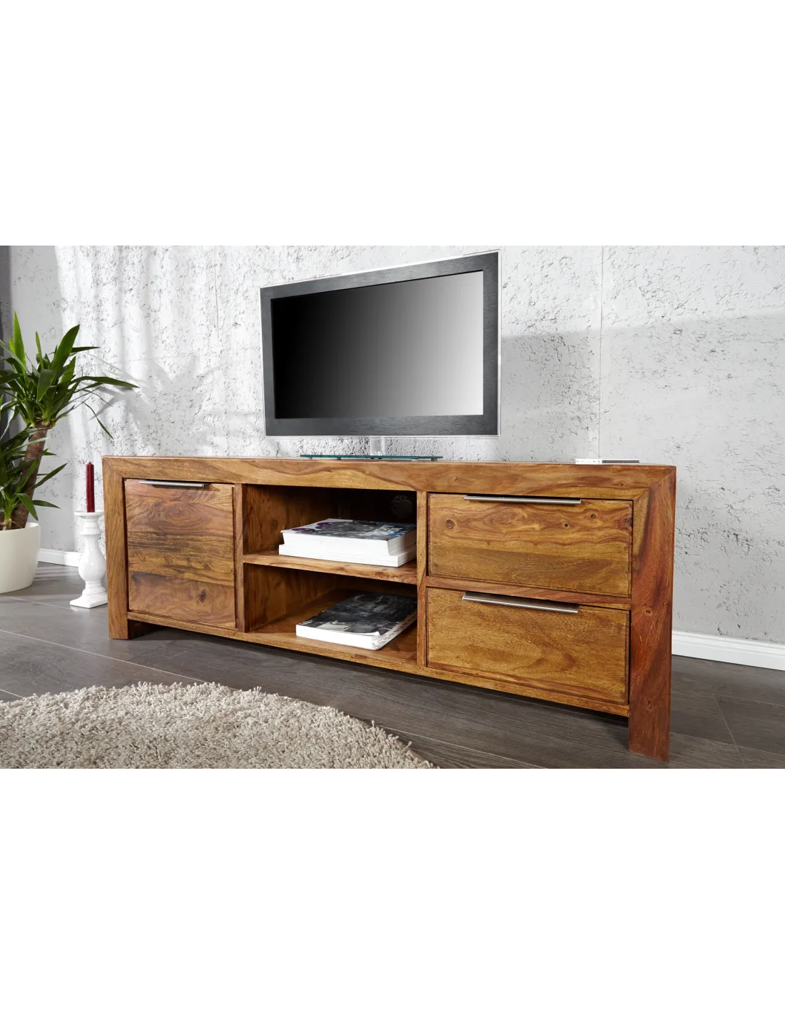 Meuble TV LAGOS 135 cm en bois de sheesham – Finition naturelle