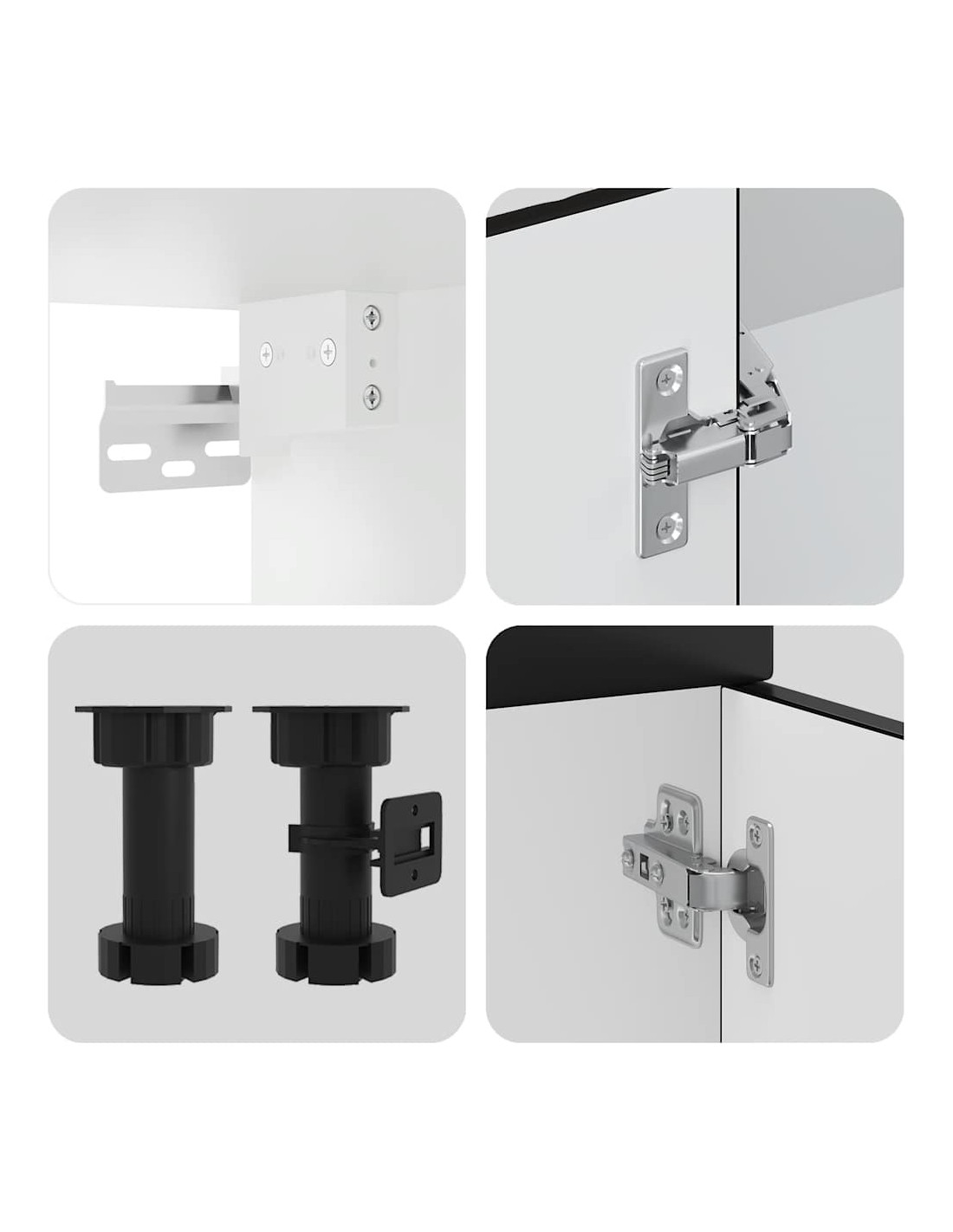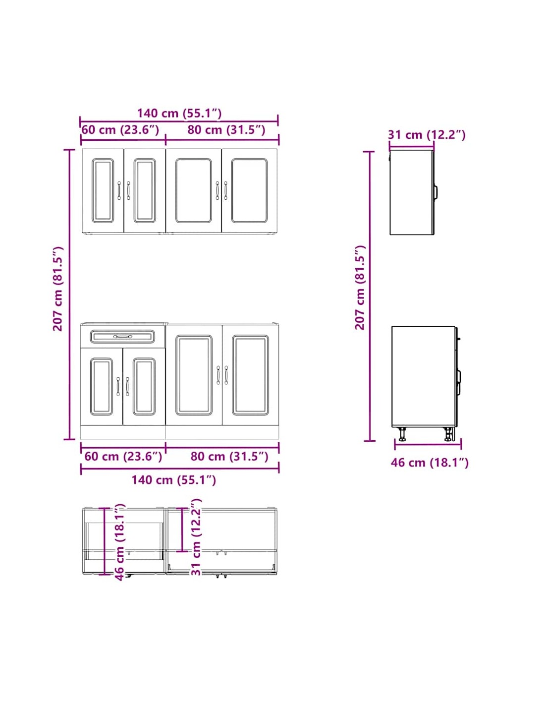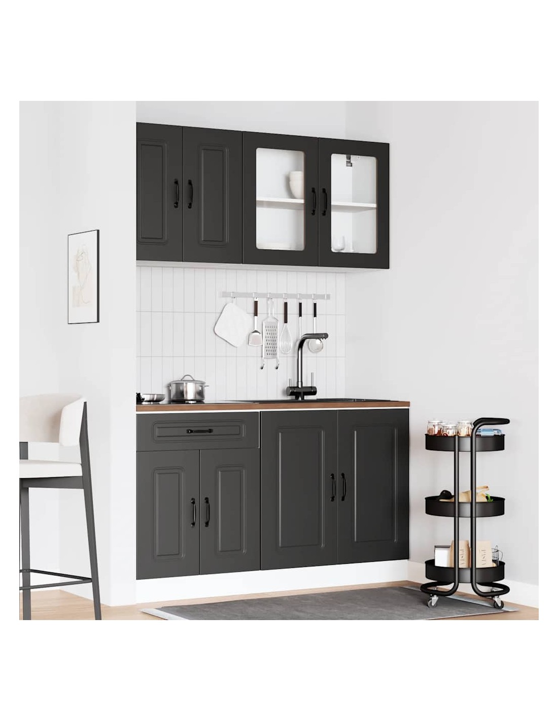 Cet ensemble de meubles de cuisine de 4 pièces, au design élégant, optimise votre espace de cuisine et offre un espace de rangement suffisant pour vos effets personnels ! Ces armoires sont durables et fonctionnelles, ce qui permet de mieux organiser votre cuisine. Elles offrent également suffisamment d’espace pour stocker des bols, des assiettes, des casseroles et d’autres appareils de cuisine. En outre, cet ensemble est facile à nettoyer avec un chiffon humide. Veuillez noter que le plan de travail, l'évier et le robinet ne sont pas inclus dans la livraison.