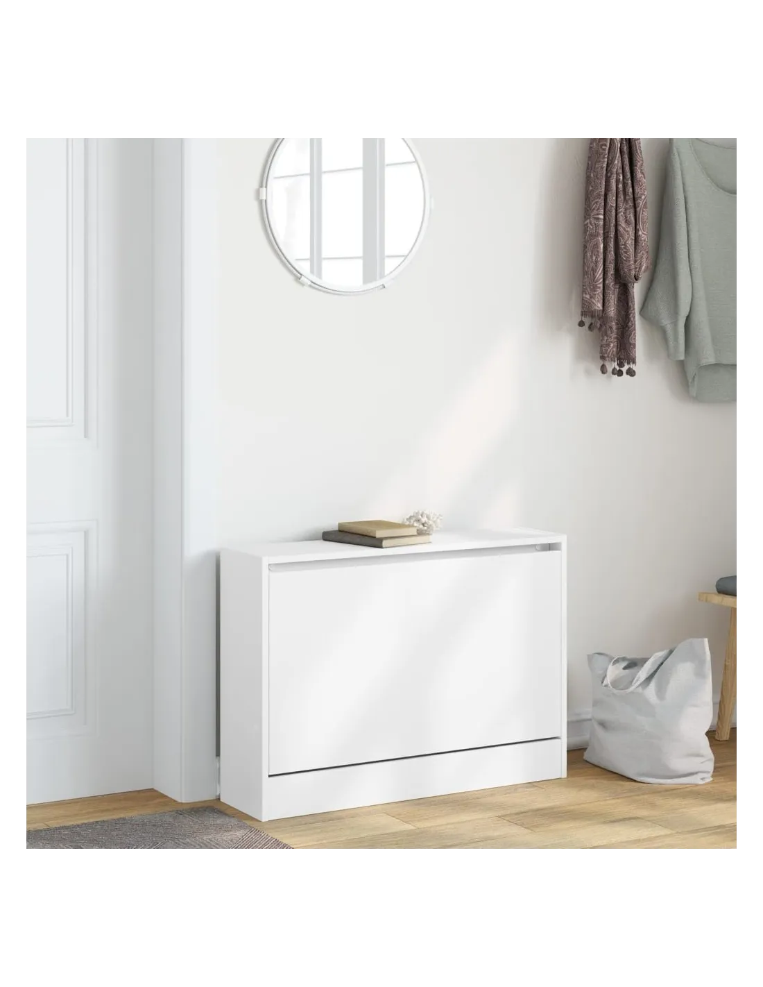 Cette armoire à chaussures est un excellent choix pour ranger vos chaussures de manière organisée, notamment dans les espaces restreints et étroits grâce à son design compact. Matériau durable : le bois d'ingénierie est d'une qualité exceptionnelle avec une surface lisse et présente également résistance, stabilité et résistance à l'humidité.Grand espace de rangement : cette étagère à chaussures comprend 1 tiroir rabattable, offrant suffisamment d'espace pour garder vos chaussures à portée de main et bien organisées.Dessus pratique : le dessus robuste de l'armoire à chaussures est idéal pour exposer des objets décoratifs, des cadres photo ou des plantes en pot.Conception peu encombrante : l'armoire de rangement à chaussures mince est conçue pour s'adapter parfaitement aux petits espaces