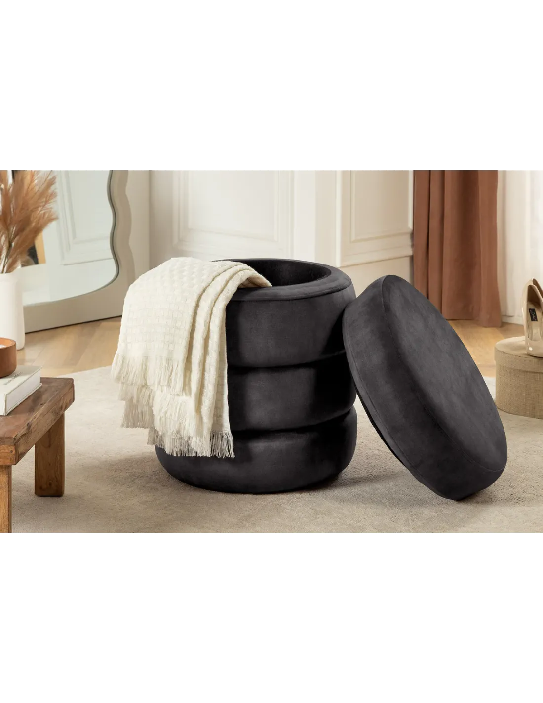 Le tabouret VOQUE en velours gris est fonctionnel et esthétique, alliant style contemporain, confort et rangement pratique. C’est la solution idéale pour optimiser vos espaces tout en apportant une touche décorative raffinée.