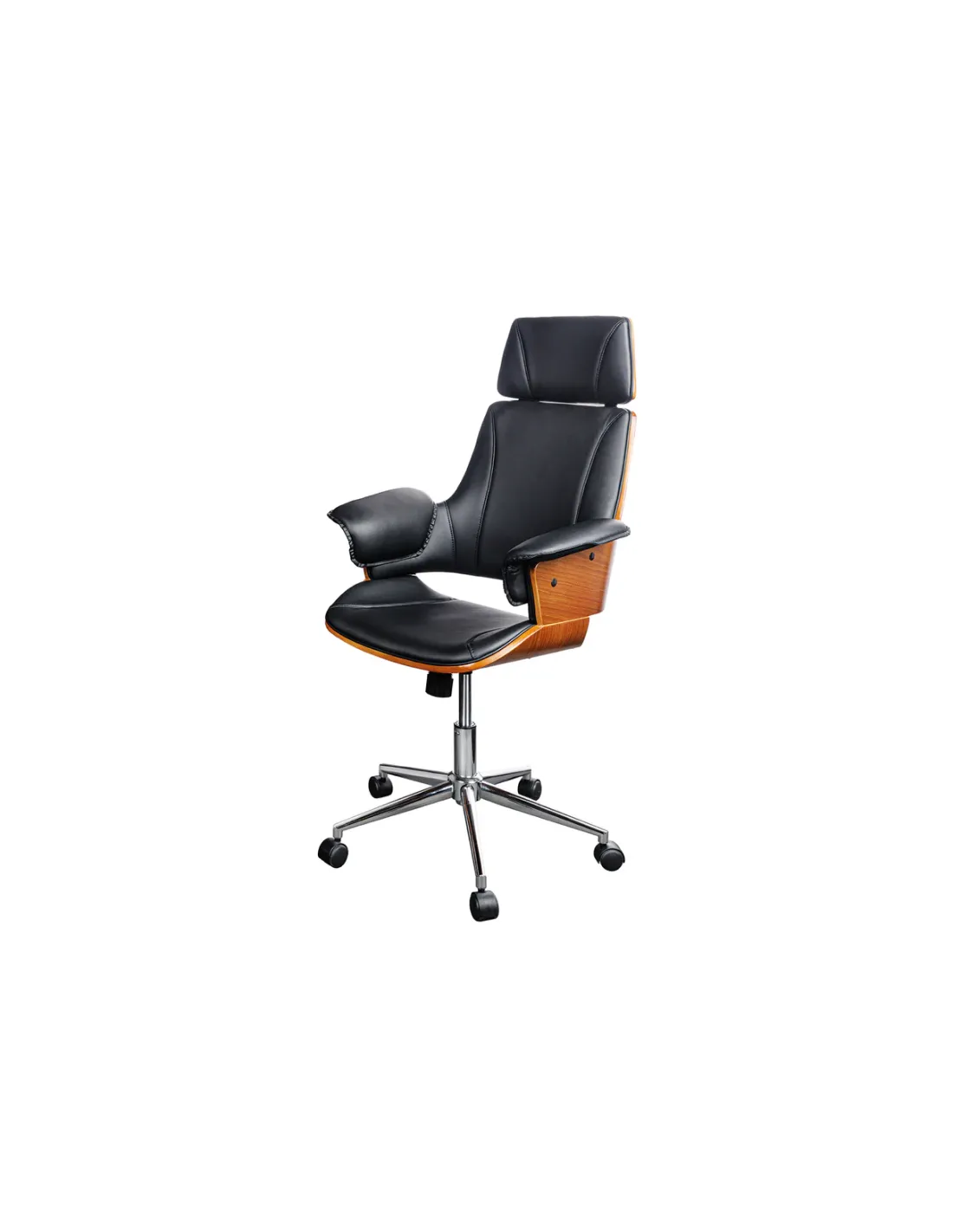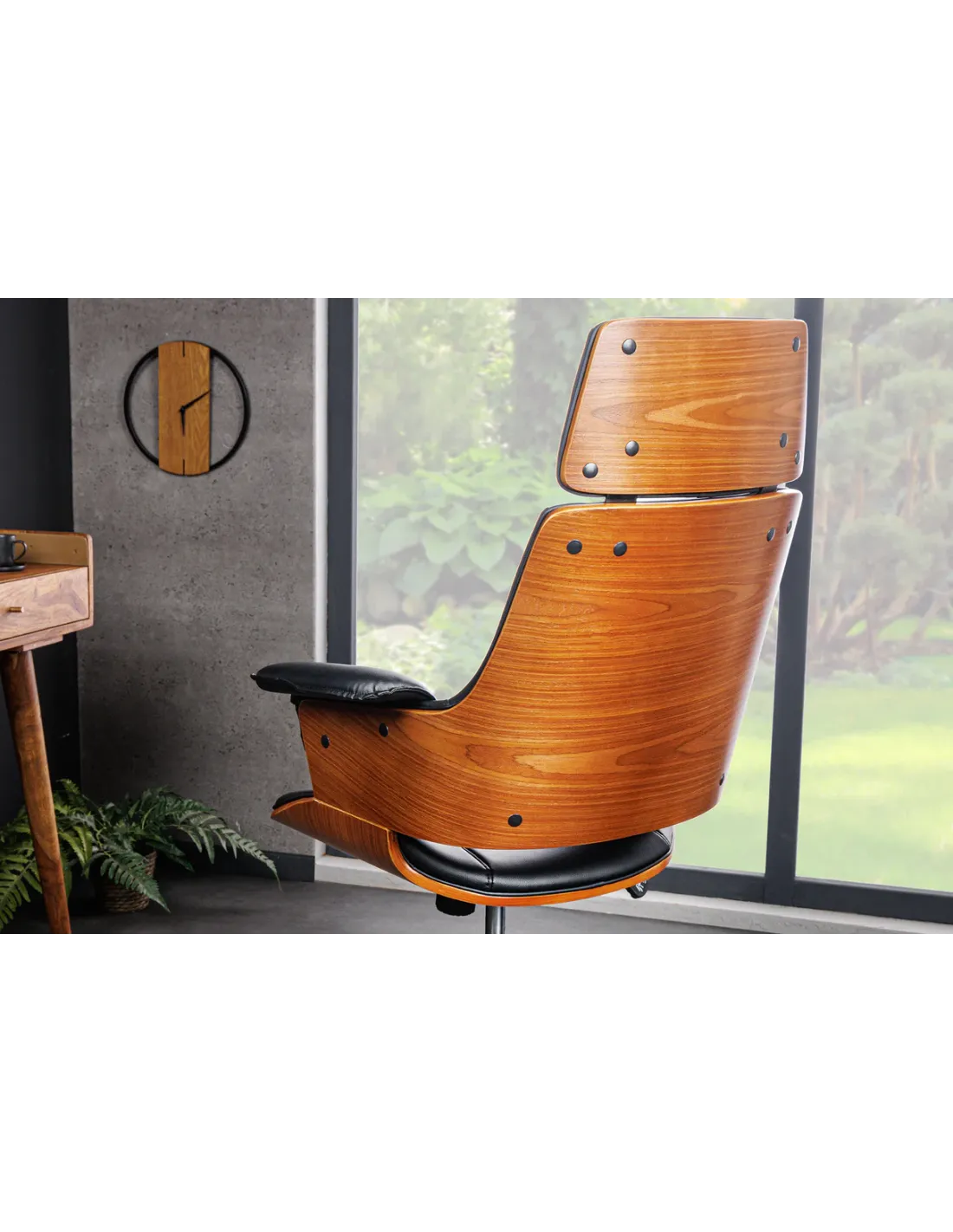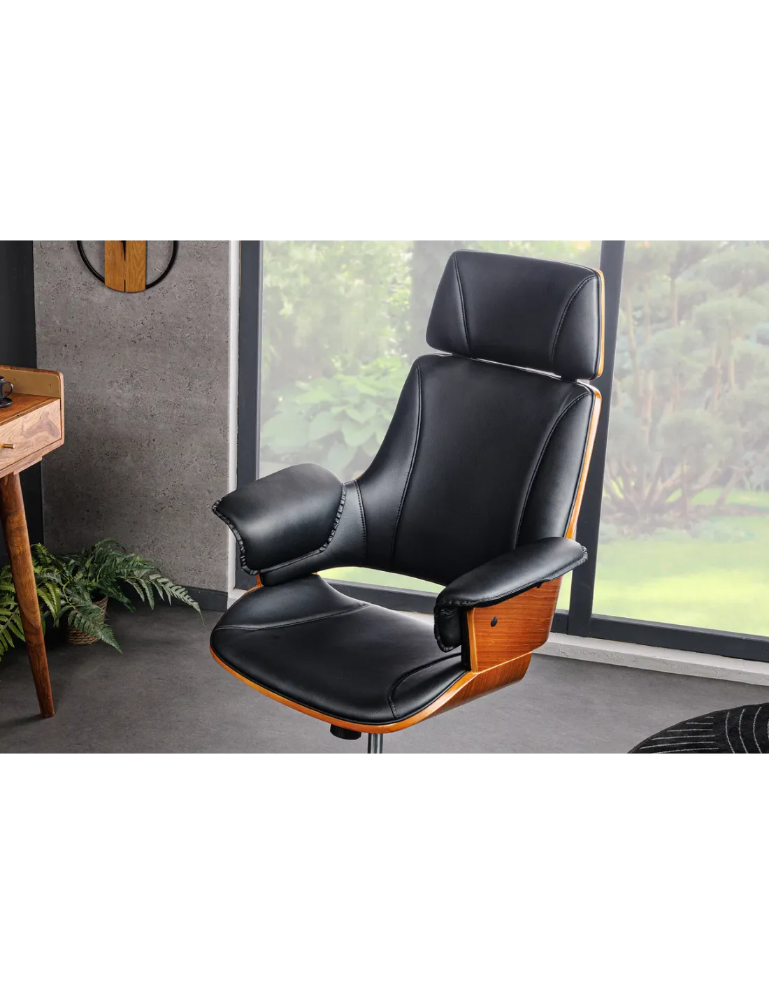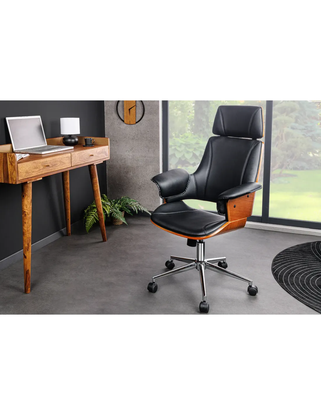 👉 La chaise de bureau Manhattan en similicuir noir et bois de noyer est idéale pour allier élégance, confort et praticité, aussi bien dans un bureau professionnel que dans un espace de travail à domicile.