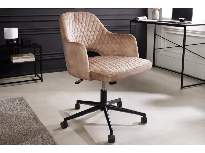 ✨ La chaise de bureau PARIS en velours grège séduit autant par son style élégant que par son confort fonctionnel. Parfaite pour conjuguer travail et esthétisme, elle apporte une note chic à votre bureau ou à votre espace de télétravail.