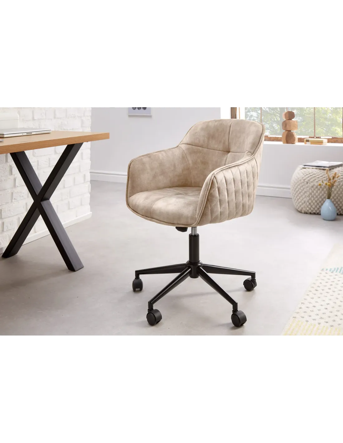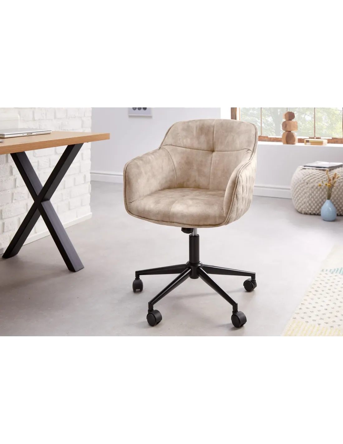 ✨ La chaise de bureau EUPHORIA en velours champagne grège allie raffinement, confort et fonctionnalité. Parfaite pour travailler avec élégance, elle s’intègre harmonieusement dans un bureau moderne, un espace de télétravail ou même une chambre raffinée.