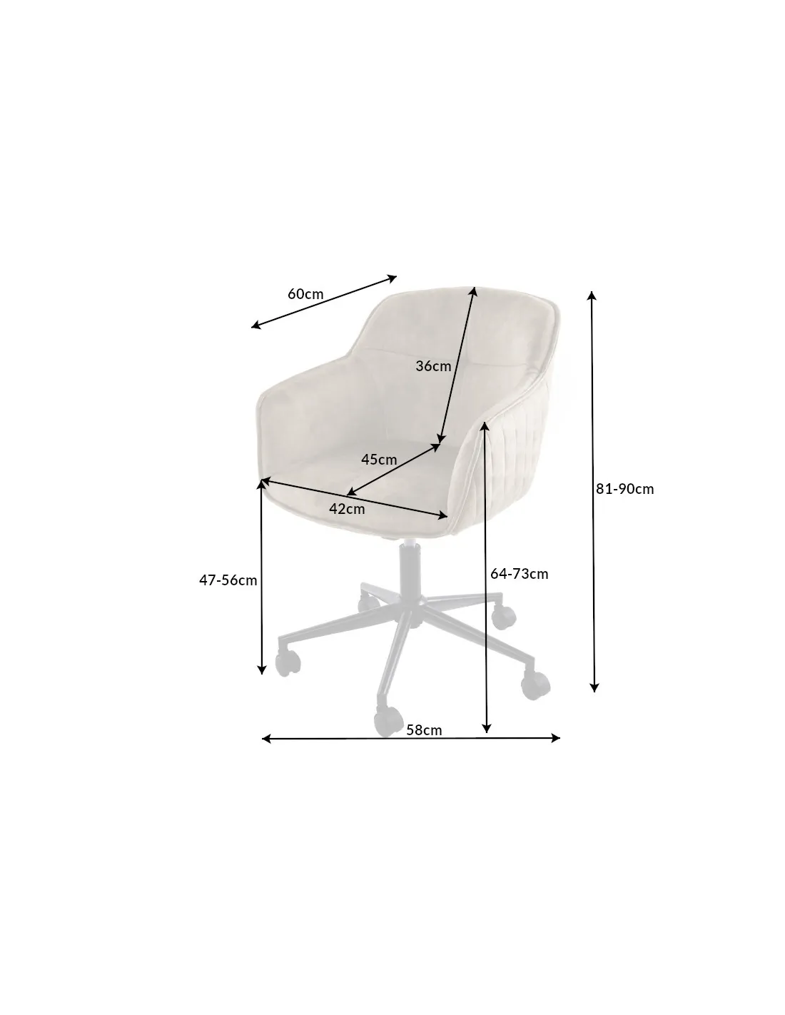 Hauteur d’assise réglable de 47 à 56 cm, pour s’adapter parfaitement à votre morphologie et à la hauteur de votre bureau